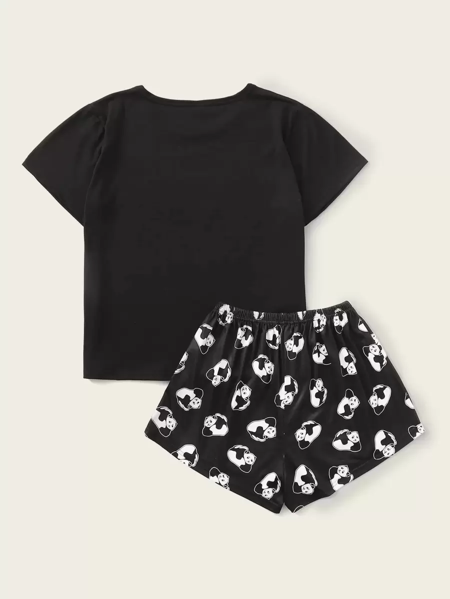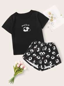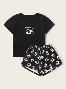 Set pigiama grafica lettera e panda