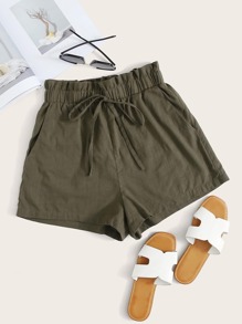 Shorts con tasca inclinata e vita a volant sovrapposti