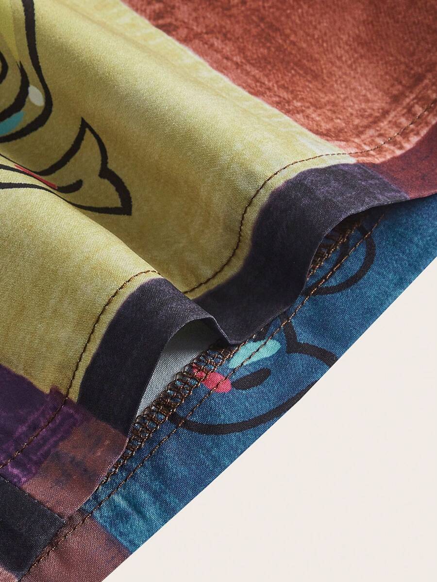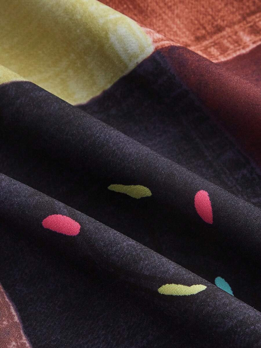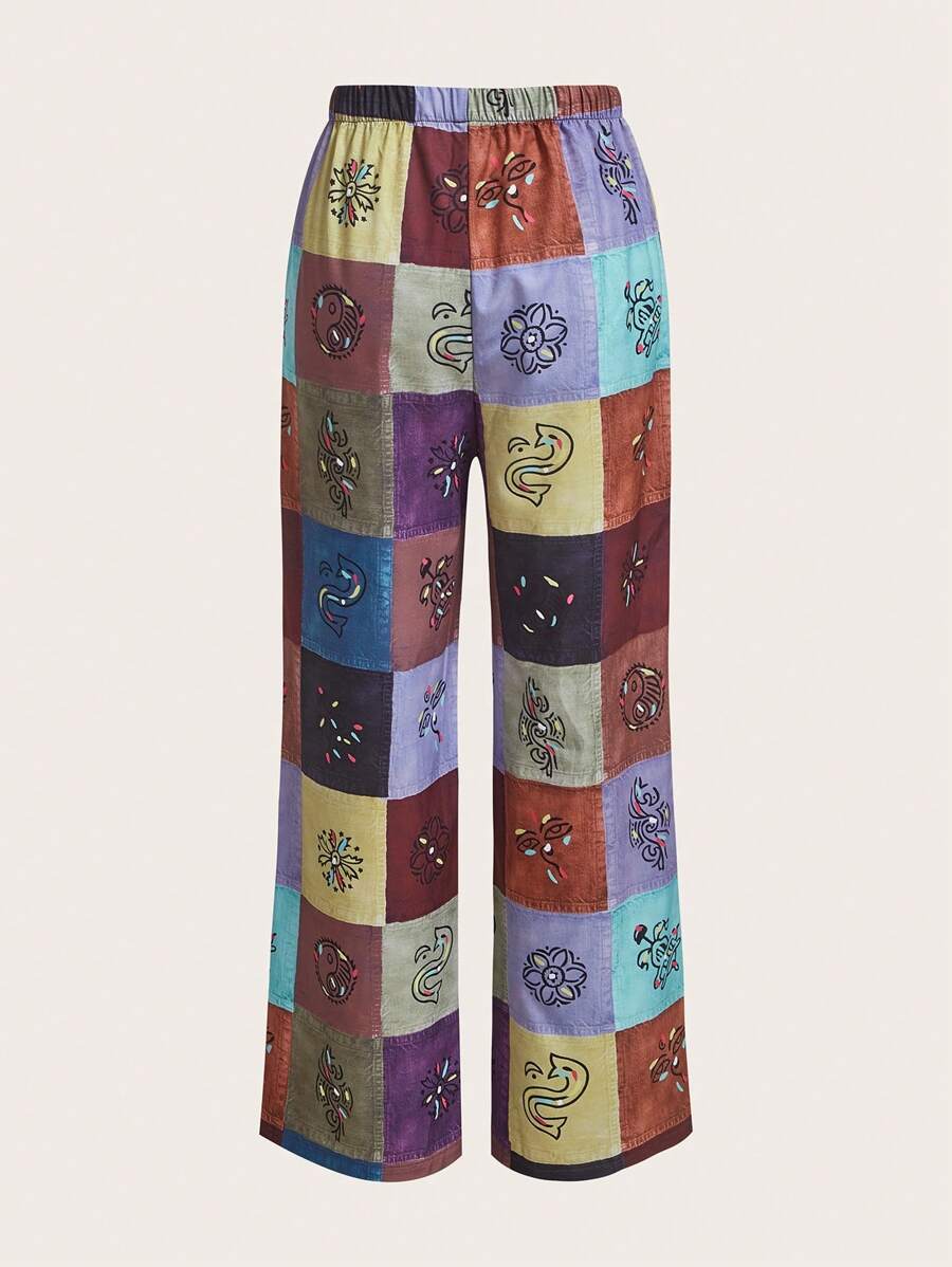 Pantaloni a gamba larga stampa patchwork con coulisse a vita