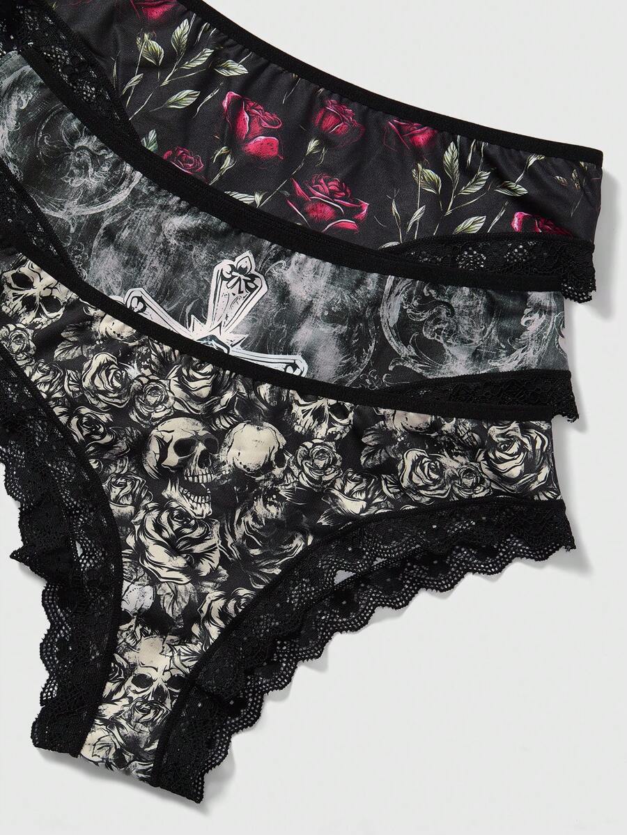 Patishop Art 3 pacchi Set mutandine con stampa teschi merletto