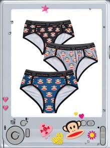Paul Frank X ROMWE 3 pezzi/confezione Slip donna con grafica di cartoni animati e lettere, vita elastica