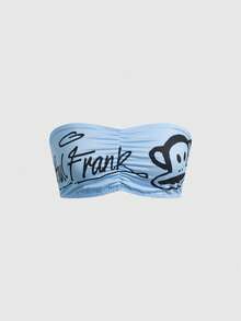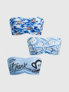 Paul Frank X ROMWE 3 pezzi Reggiseni a fascia con stampa mimetica e scimmia, con arricciature sul busto