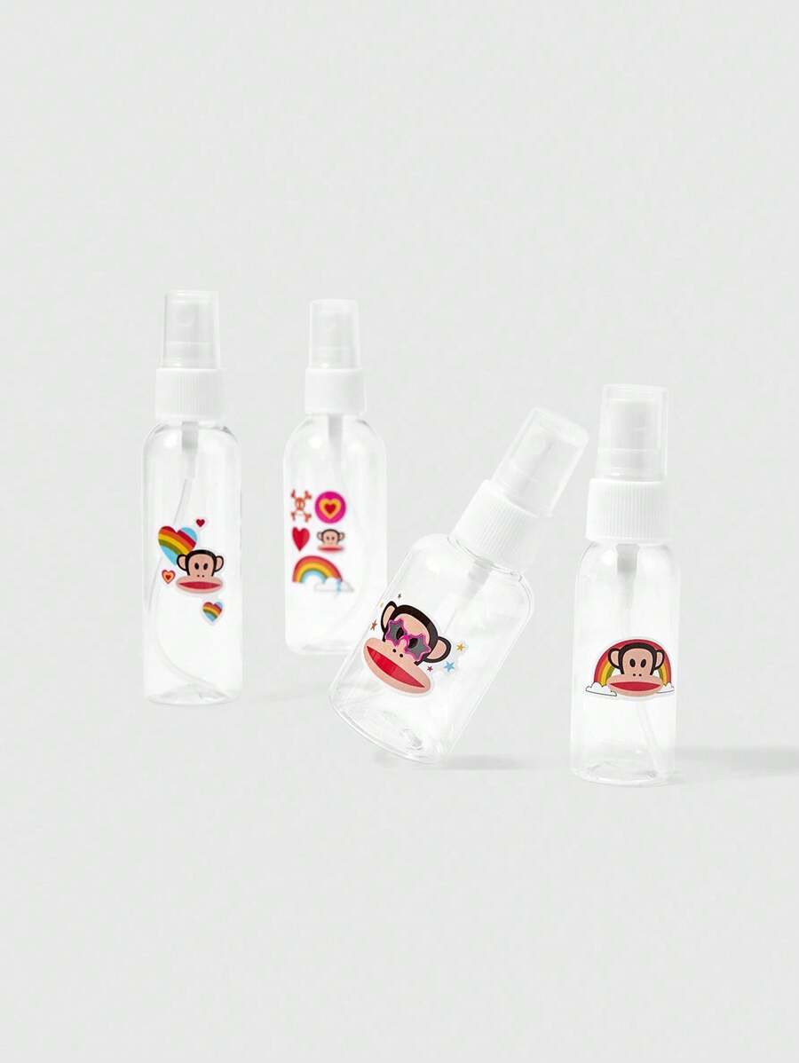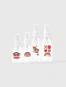 Paul Frank X ROMWE 4 pezzi di bottiglie trasparenti in PET per dispenser di liquidi con motivi arcobaleno e cartoni animati, per profumi e cosmetici