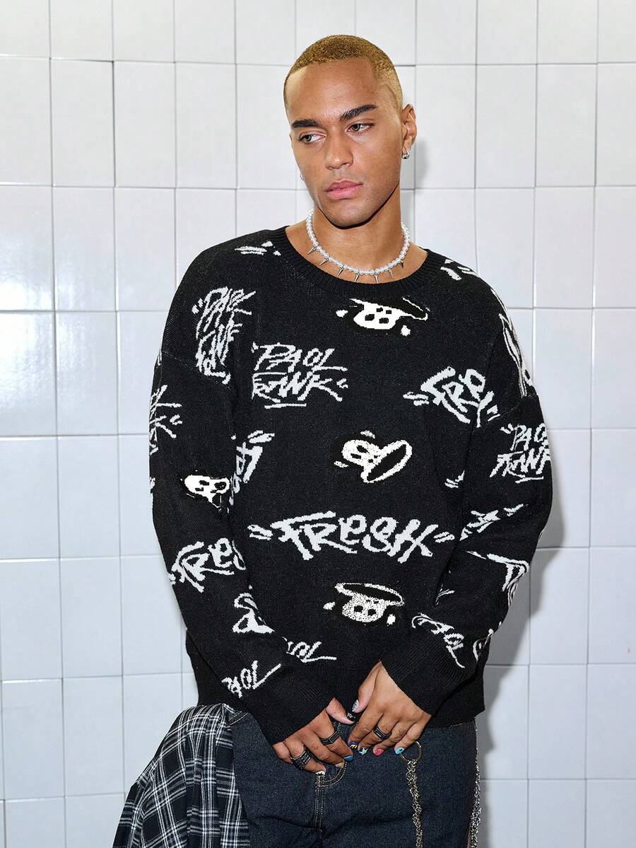 Paul Frank X ROMWE Maglione girocollo a maniche lunghe con motivo a cartone animato, autunno inverno