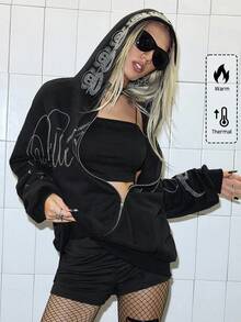 Paul Frank X ROMWE Felpa con cappuccio oversize con chiusura lampo e decorazioni in strass, stile subcultura K-pop per donne