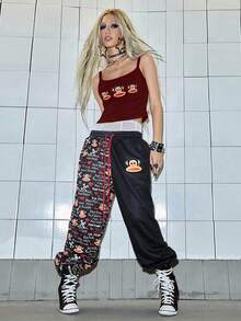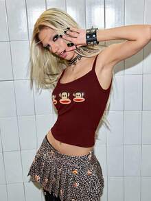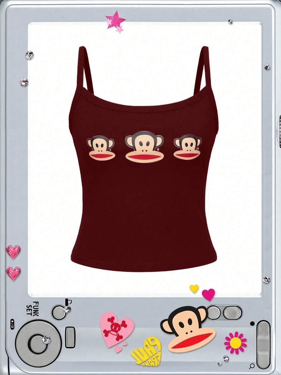 Paul Frank X ROMWE Canotta aderente in cotone con stampa di scimmia, stile Y2K per donne