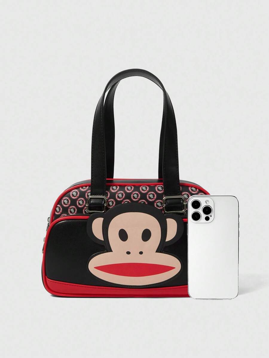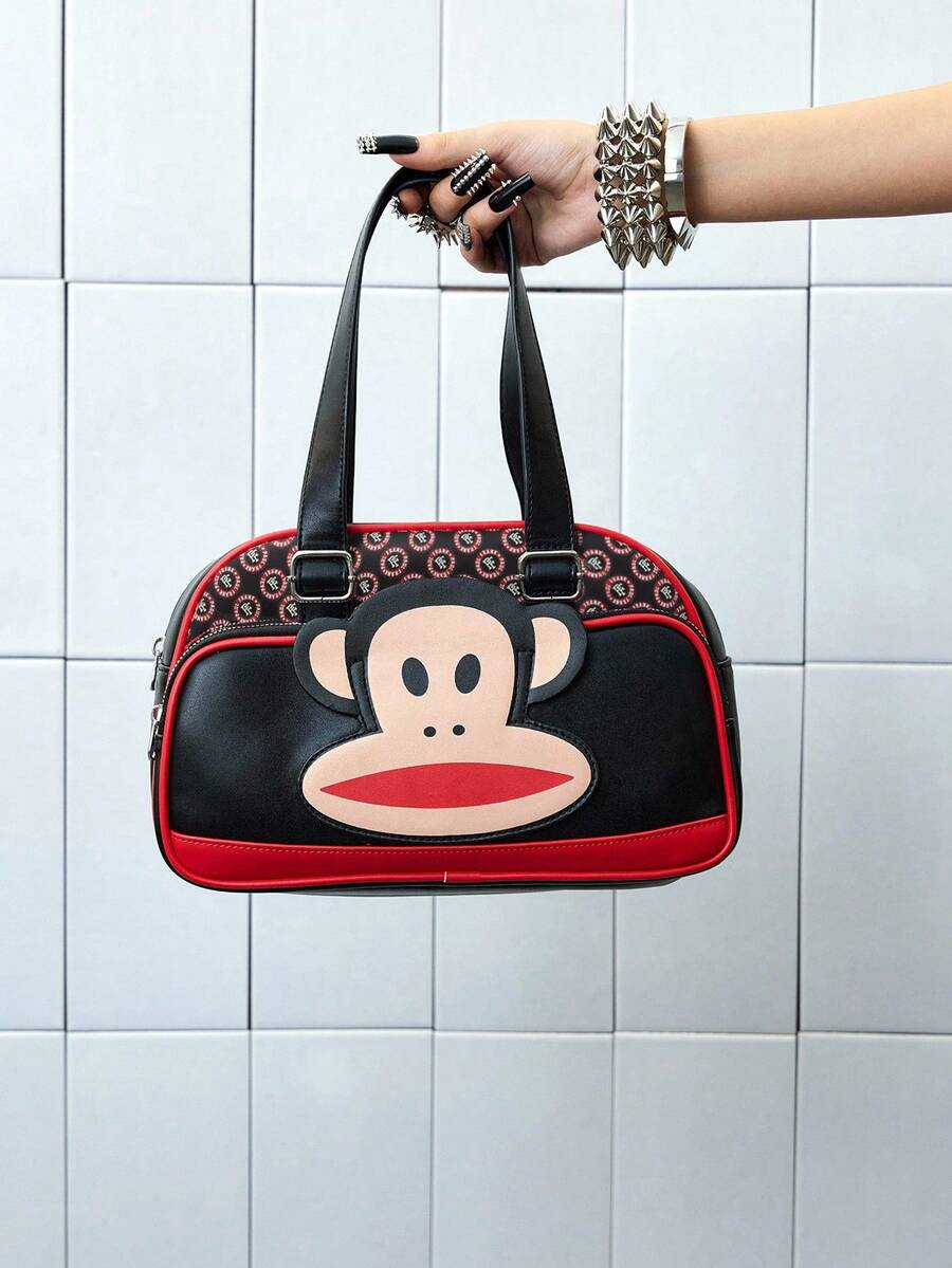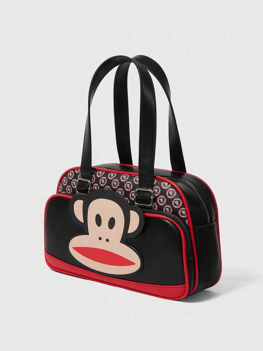 Paul Frank X ROMWE Borsa shopper nera da donna con motivo alla moda in 3D a tema cartone animato scimmietta