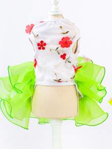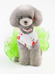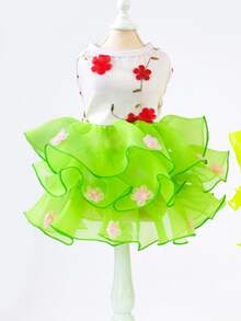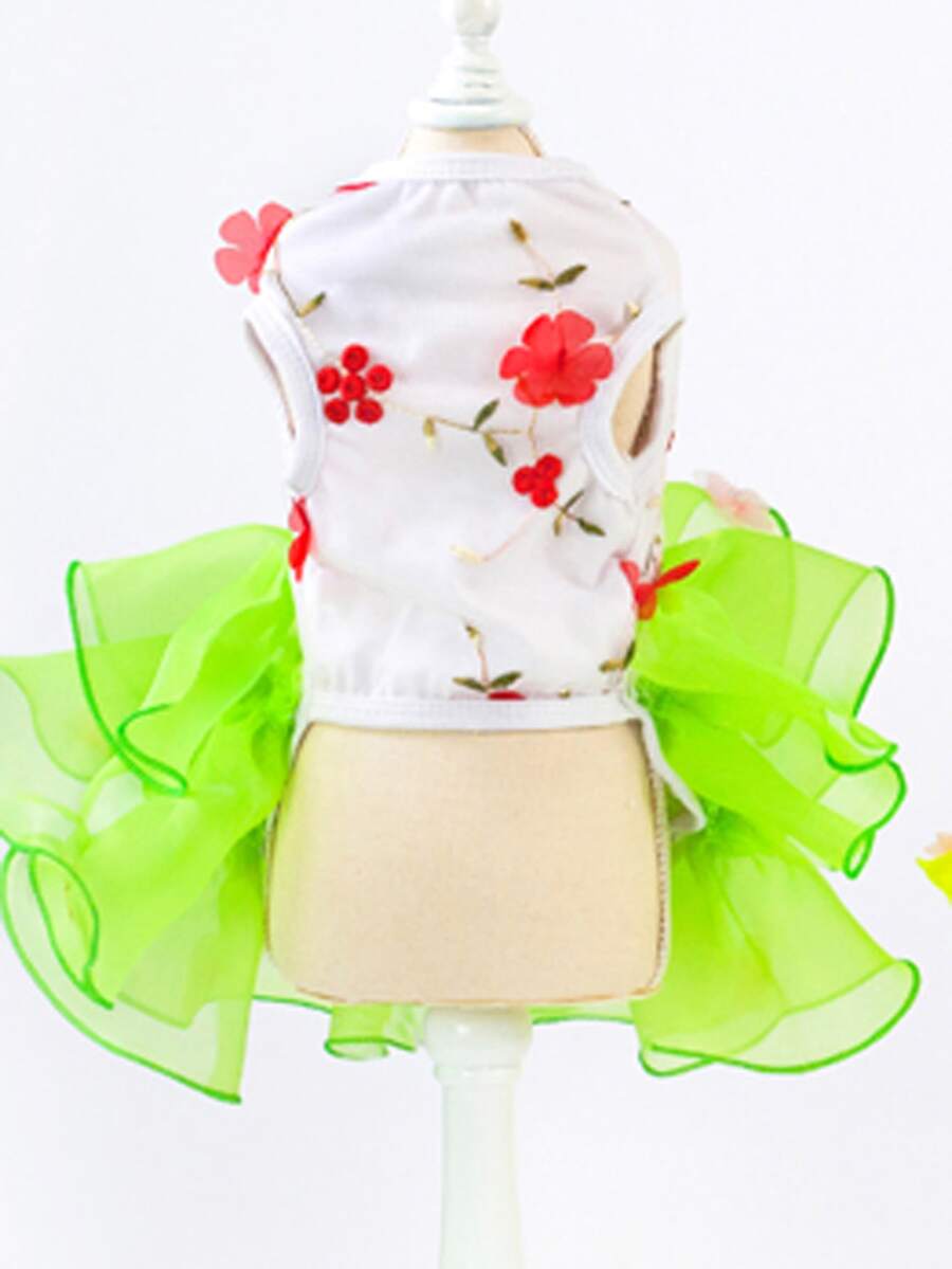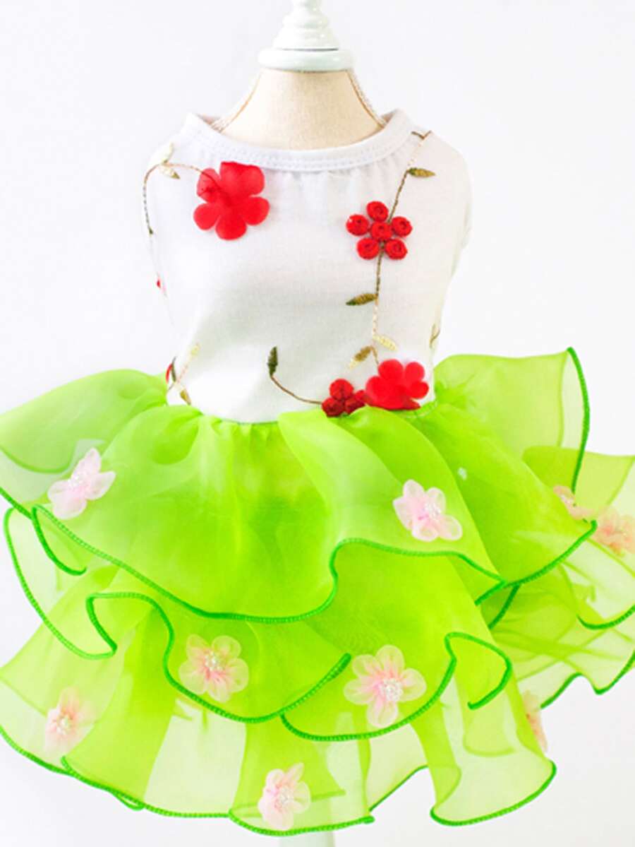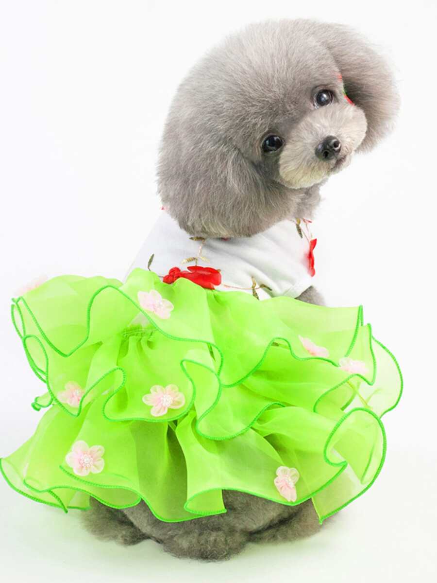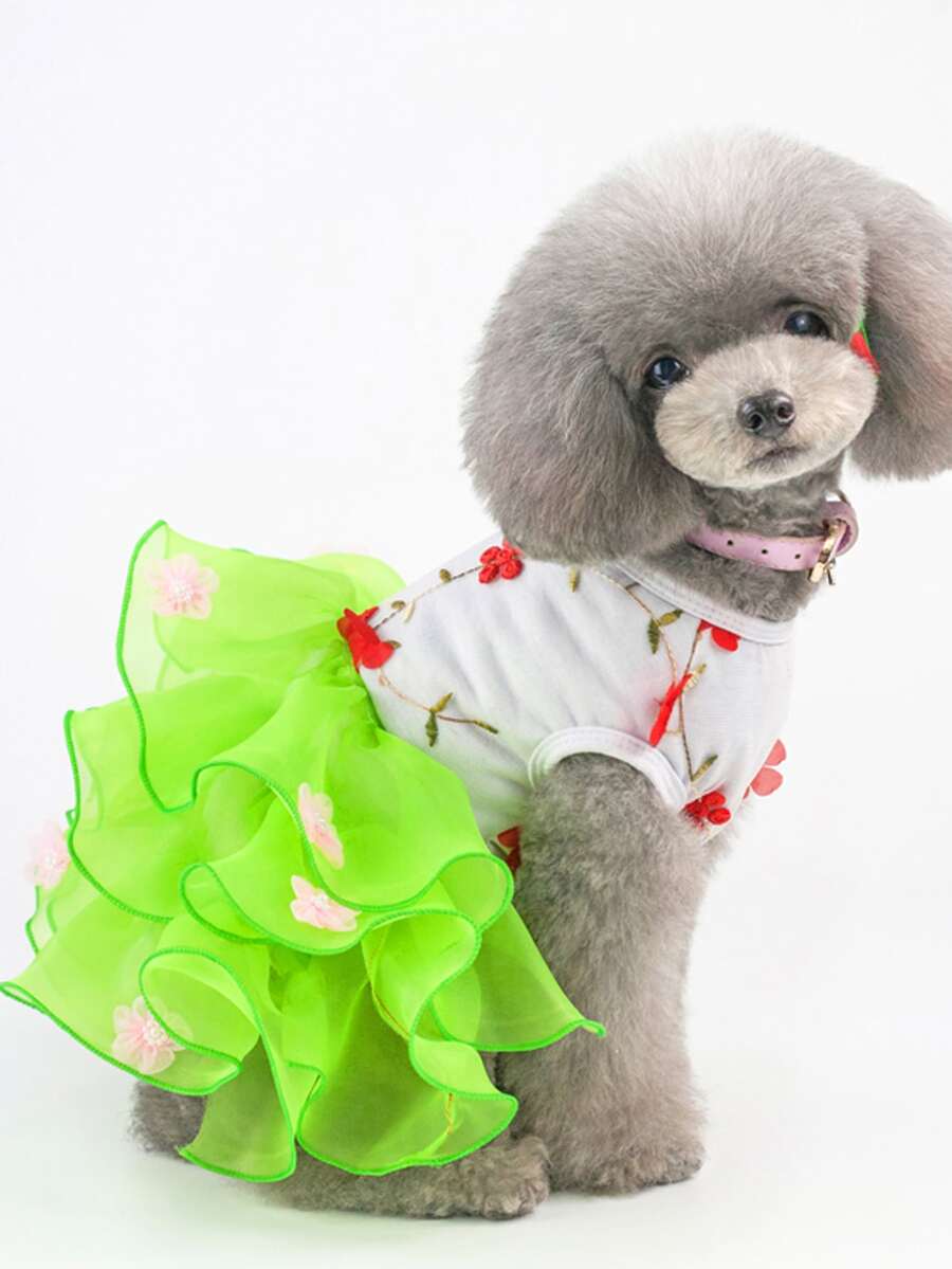 Gonna per animali domestici, Abiti per gatti - Abito con pizzo plissettato e fiore, Abito principessa per gatti, Abito da matrimonio/torta, Outfit primaverile/estivo per animali domestici, Abbigliamento animali da compagnia particolare, Stile europeo/americano Abito per cani, Abito in tulle per principessa animale