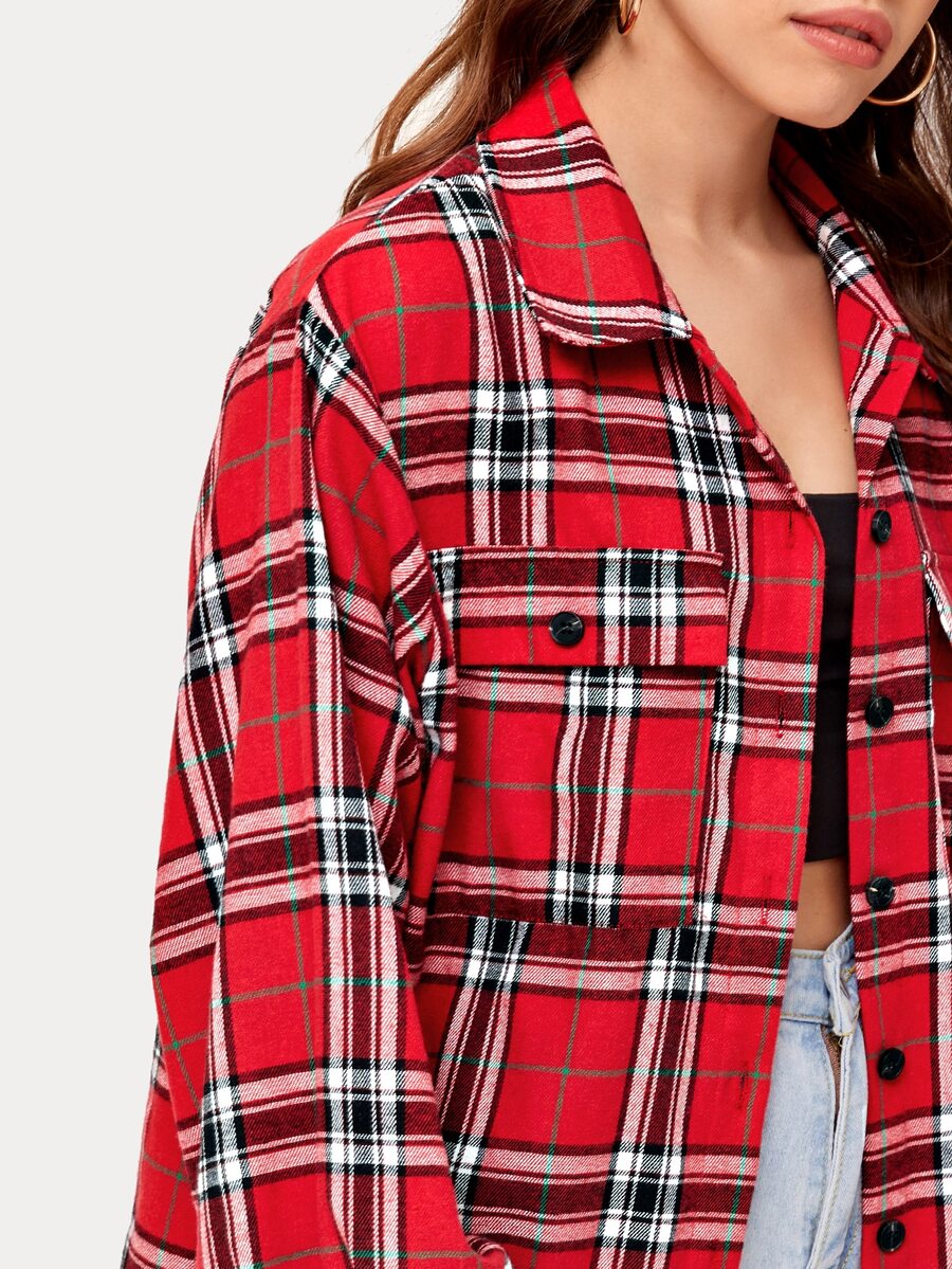 Camicetta a quadri con bottone frontale tasca