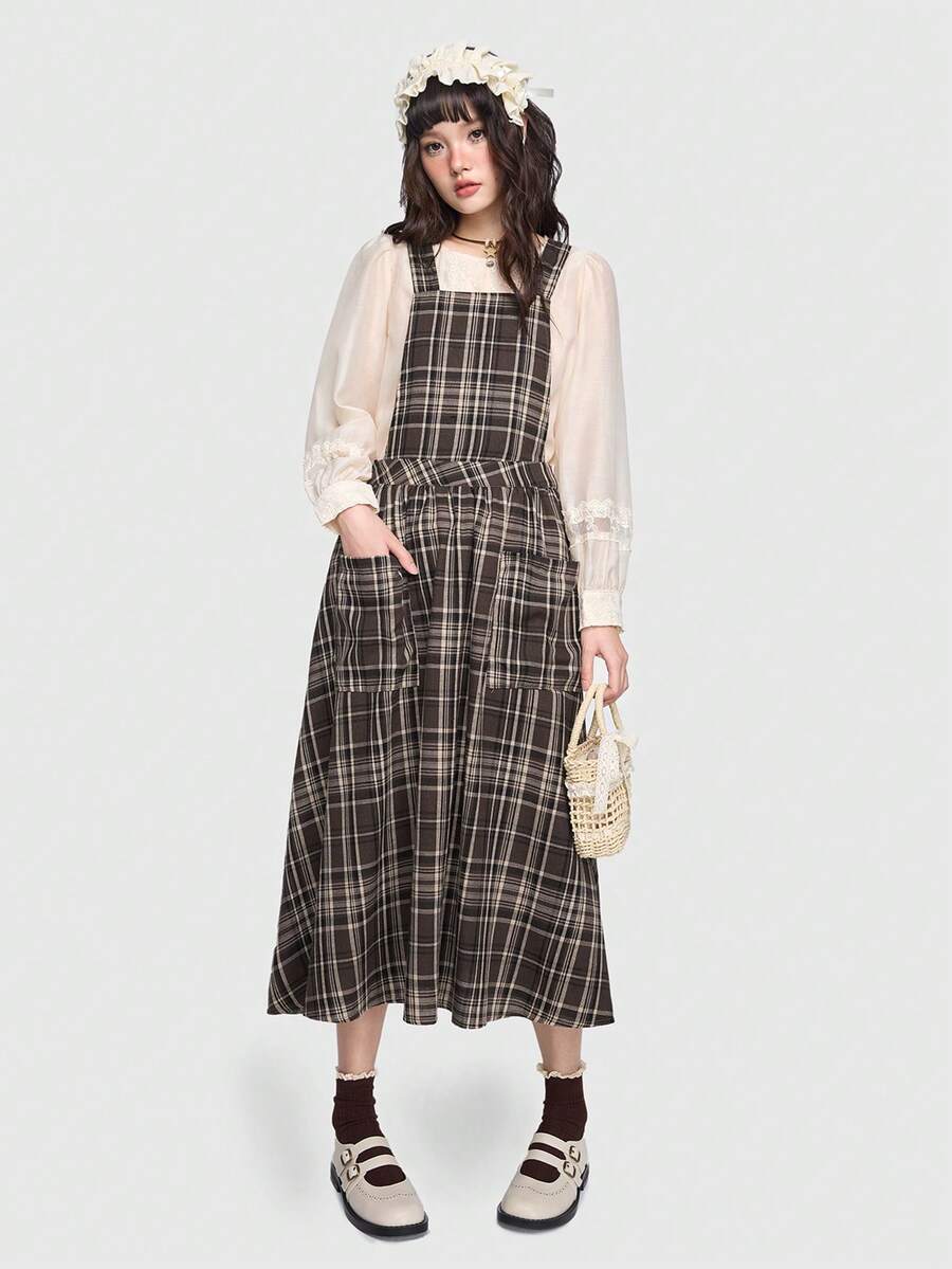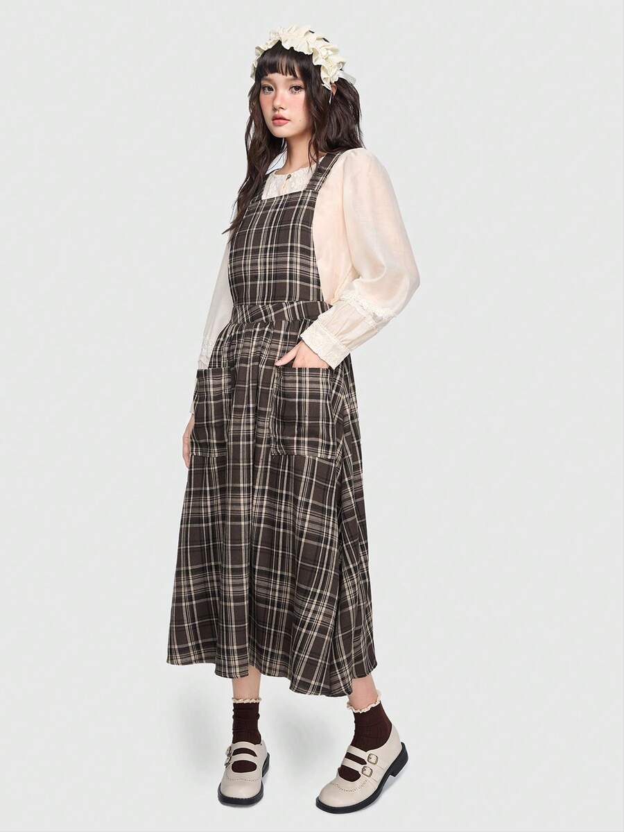 Vestito Pinafore A Quadri Con Doppie Tasche