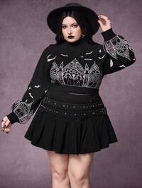 Goth Maglione oversize con collo a giro, vestibilità morbida, con stampa scura e misteriosa di teschi e pipistrelli, adatto per l'autunno/inverno