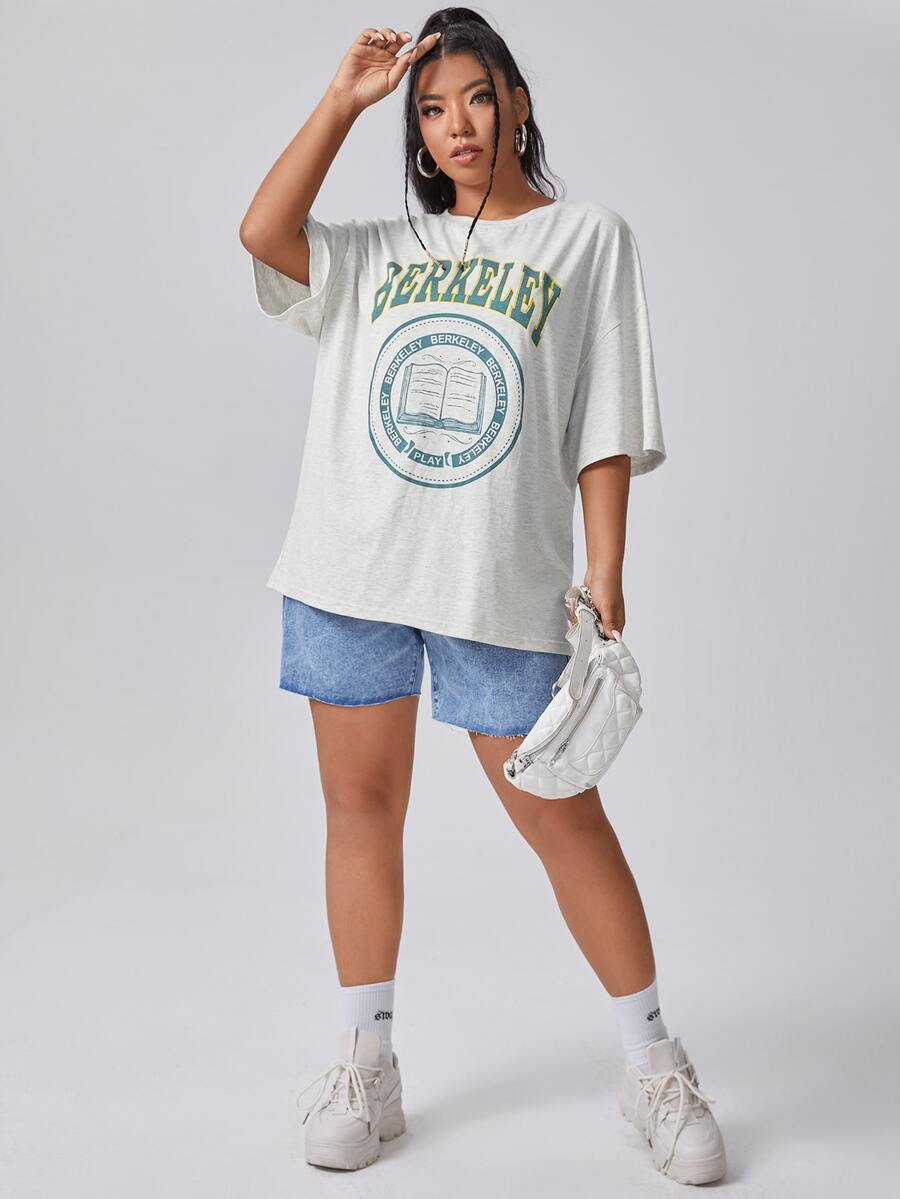 taglie forti libro e con grafica lettera Maglietta con spalla scesa