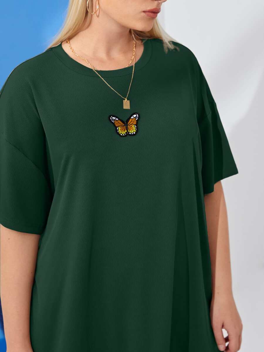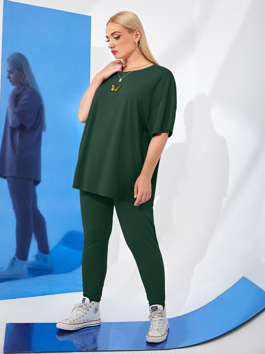 Leggings e Maglietta con spalle cadenti e toppa a farfalla taglie forti