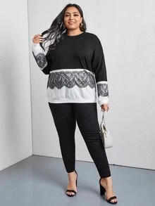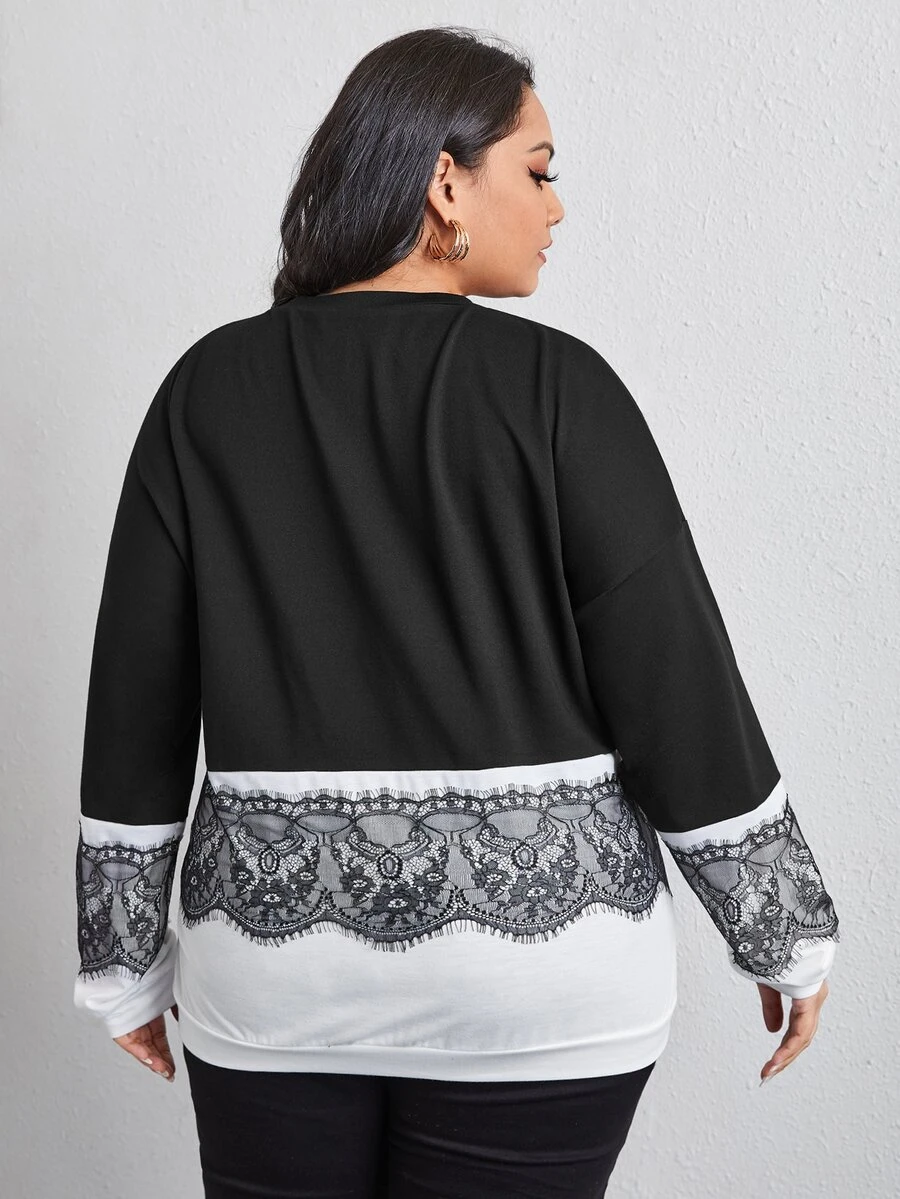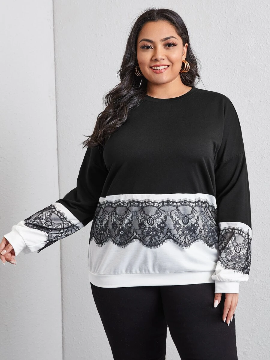 Felpa Taglia forte Pizzo a contrasto Blocchi di colore Casual