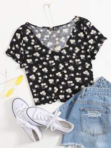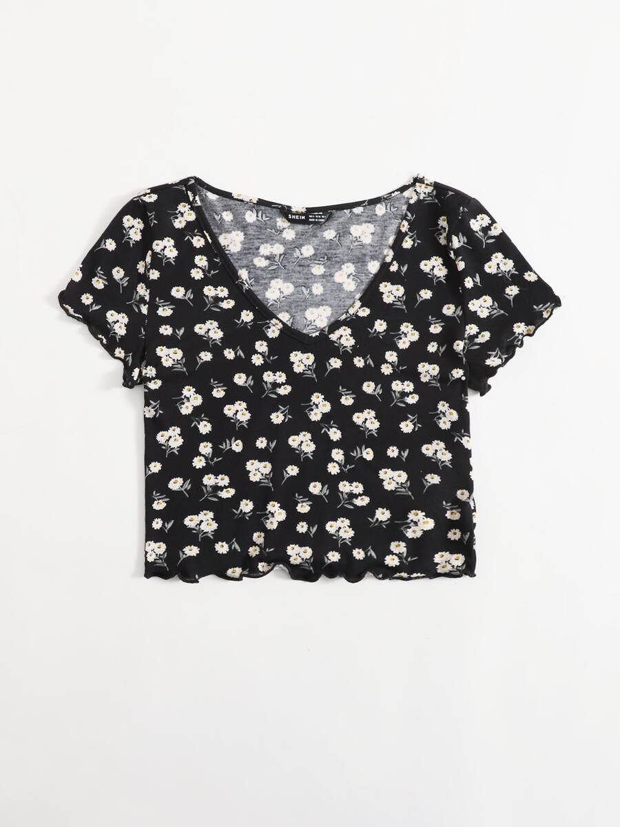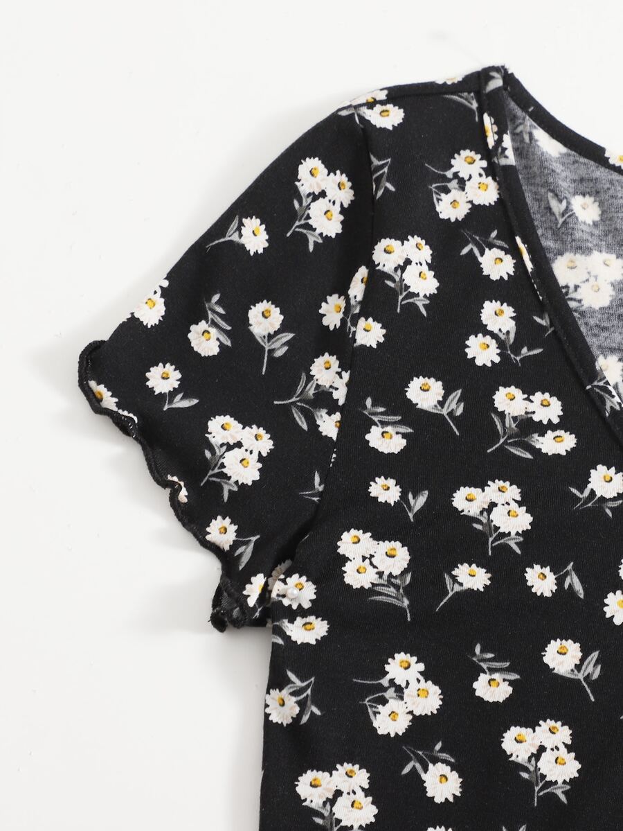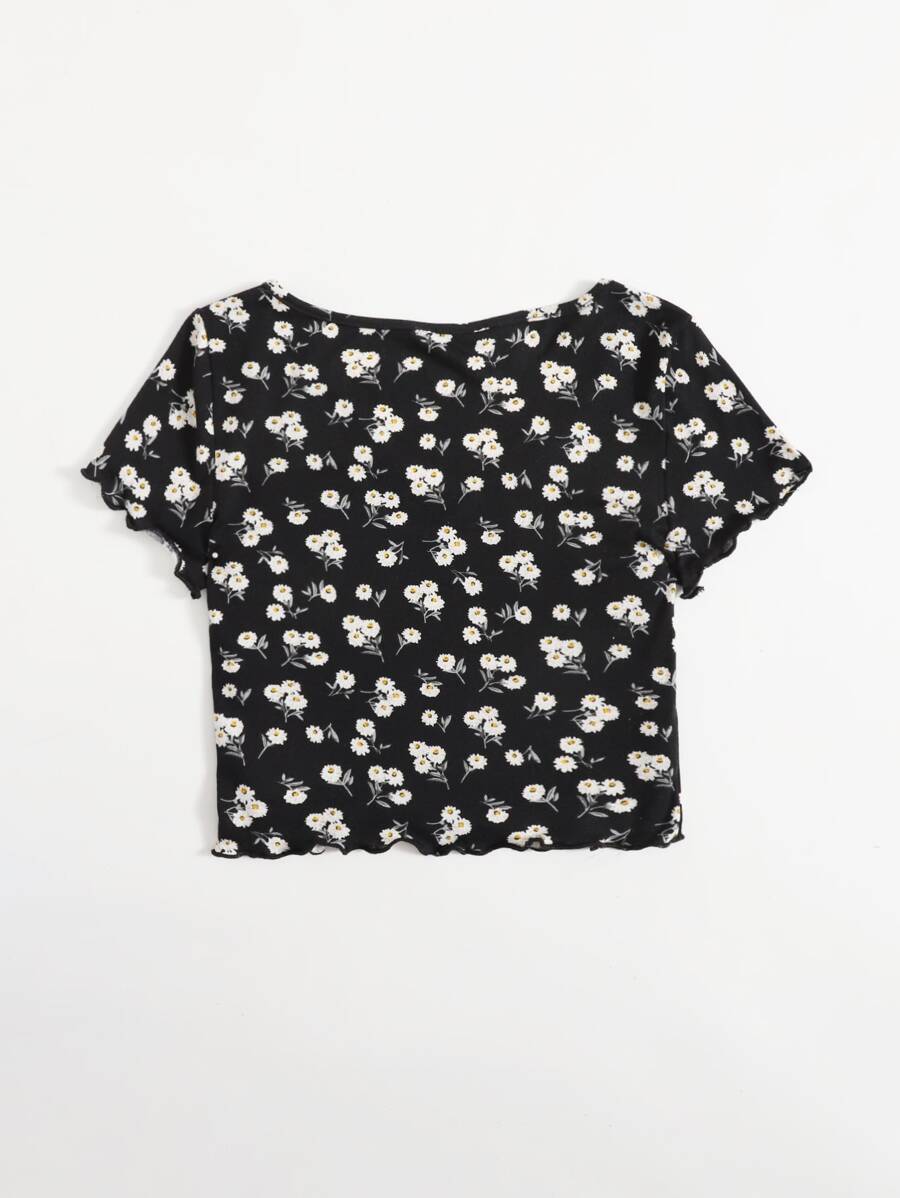 Taglie Forti Cottagecore Top orlo lattuga margherita