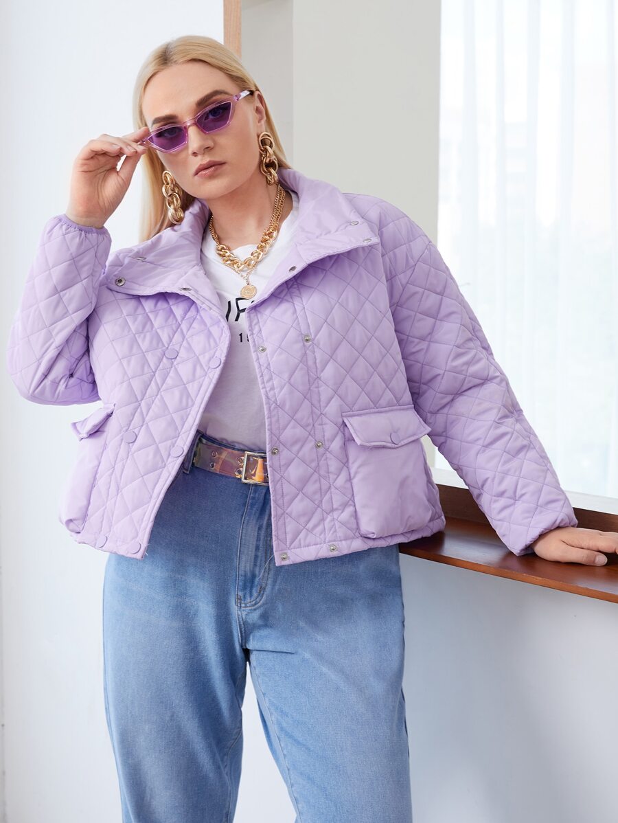 Cappotto imbottito e trapuntato con doppi bottoni a pressione, abbigliamento invernale
