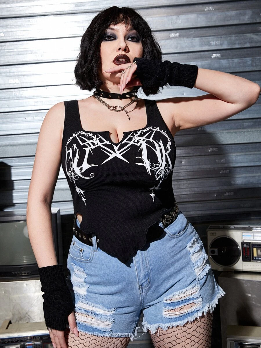 Taglie Forti Canotta con stampa grafica orlo asimmetrico