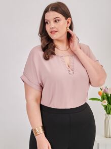 Top con polsino arrotolato con apertura a goccia in pizzo guipure