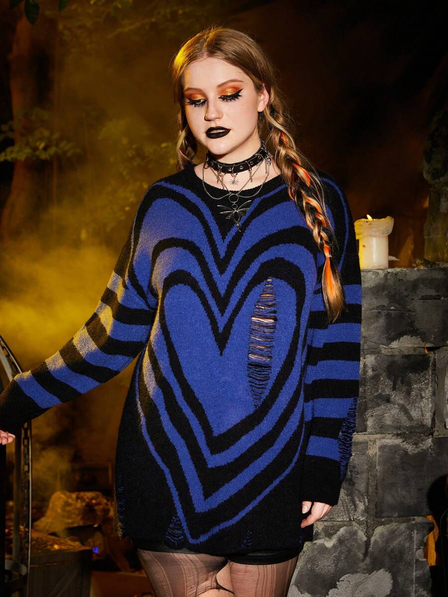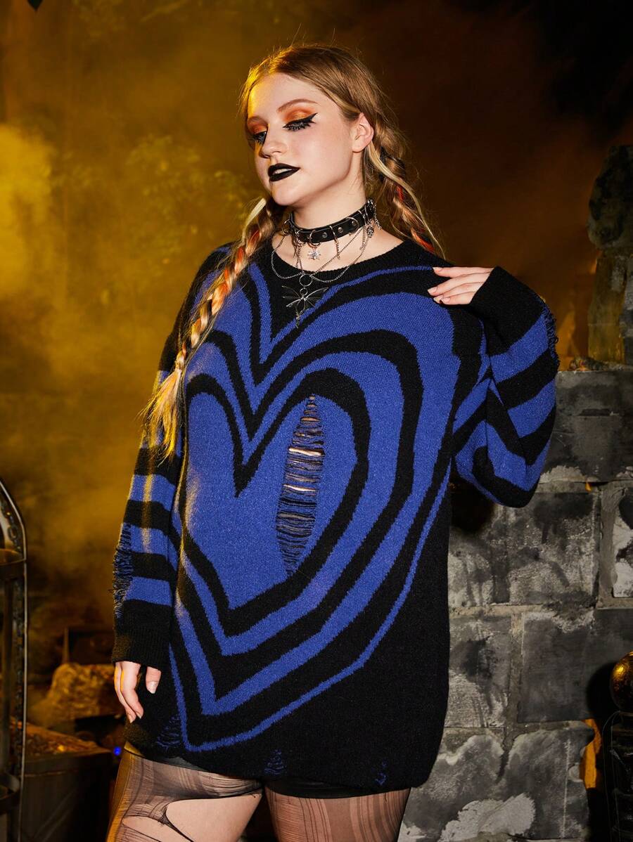 Taglie Forti Maglione modello a cuore spalle cadenti con strappati