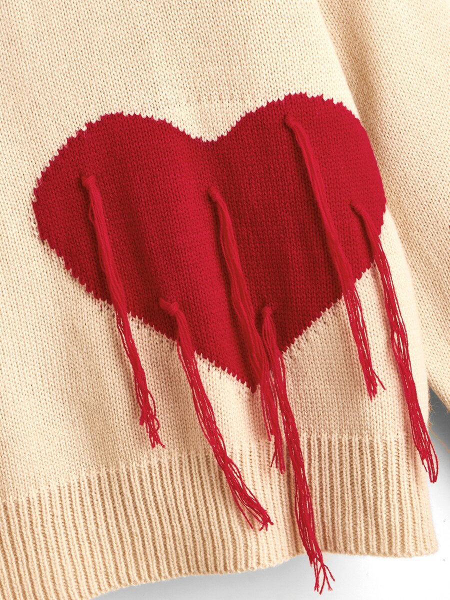 Maglione modello a cuore dettaglio frangia spalle cadenti