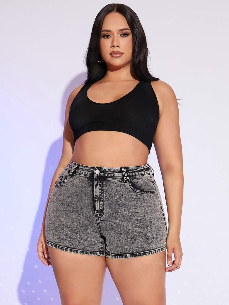 Shorts in denim vita alta