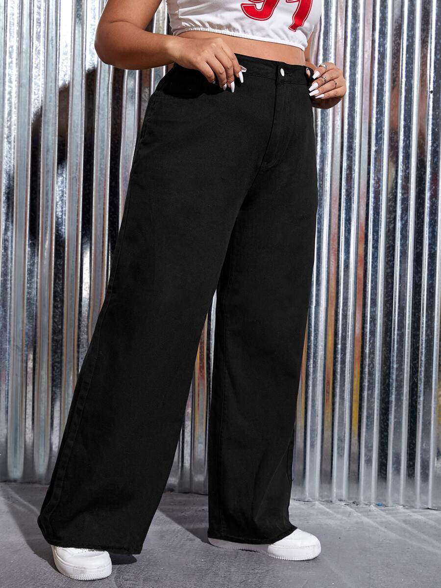Jeans A Zampa A Vita Alta Plus Neri, Jeans Larghi