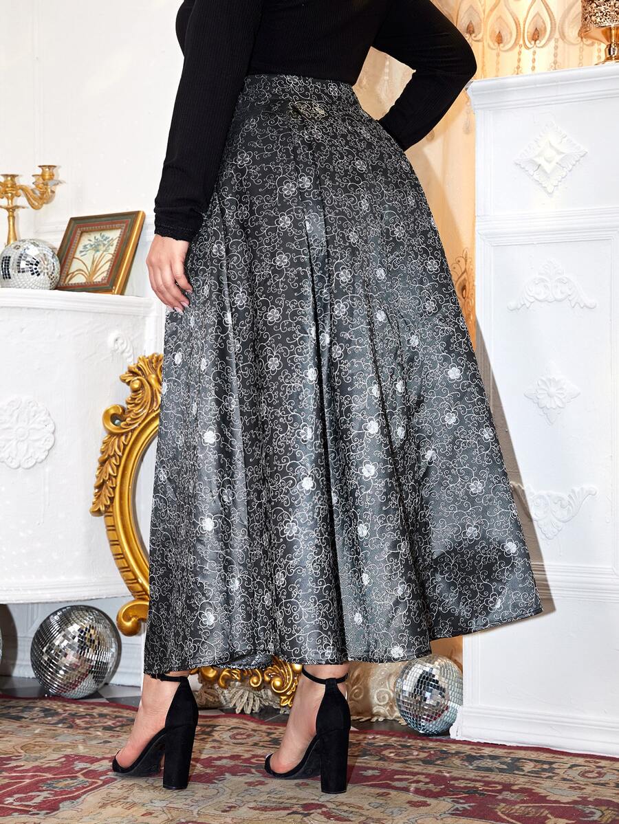 Gonna Jacquard floreale con vita alta