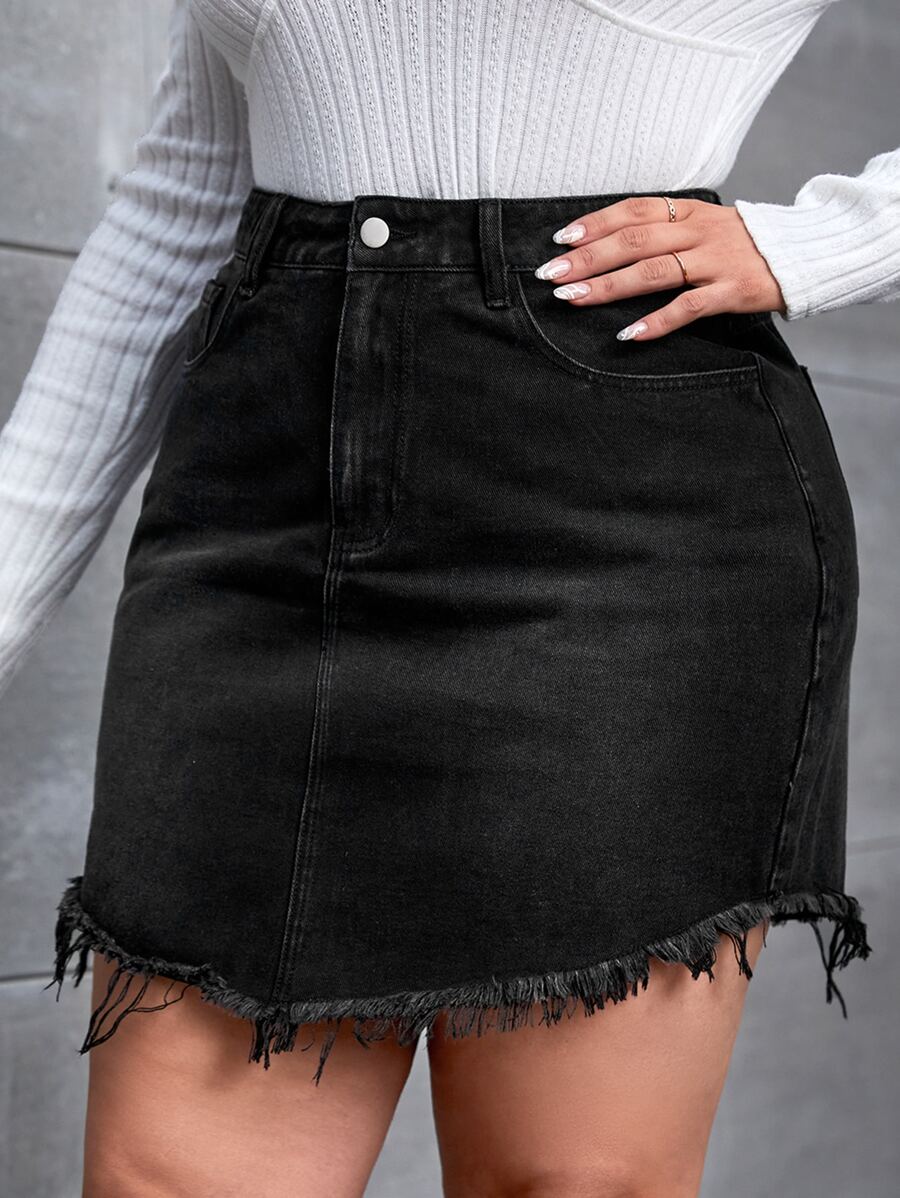 taglie forti Gonna in denim vita alta con rifinitura grezza