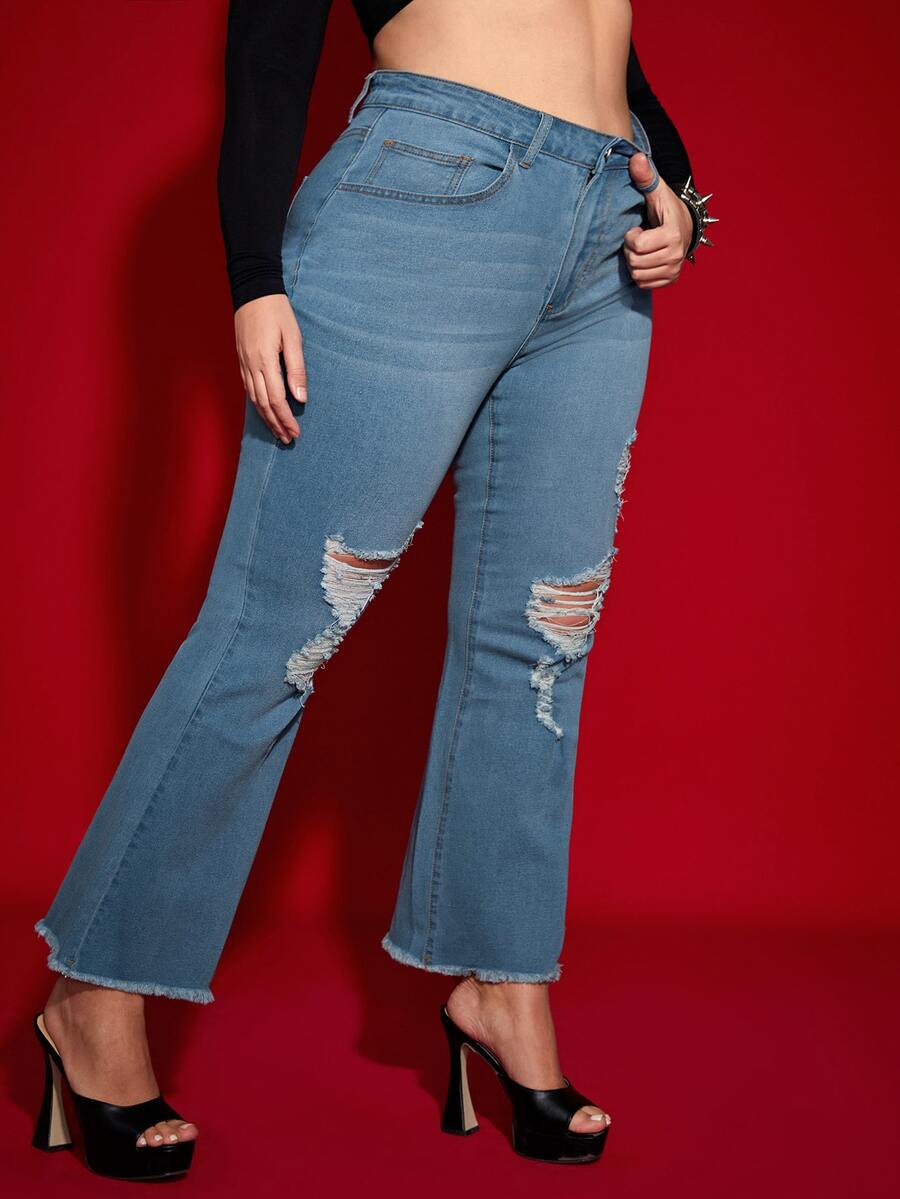 Jeans a gamba svasata vita alta con strappati con taglio grezzo