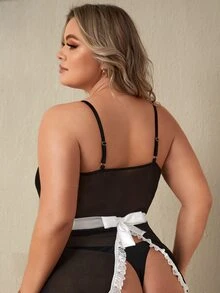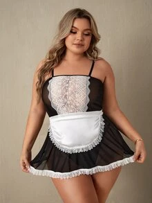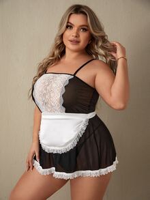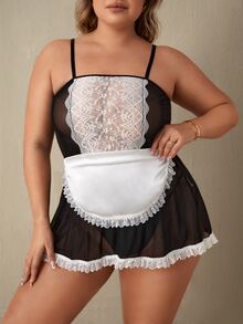 Taglie Forti Slip costume da cameriera orlo di pizzo con Grembiule