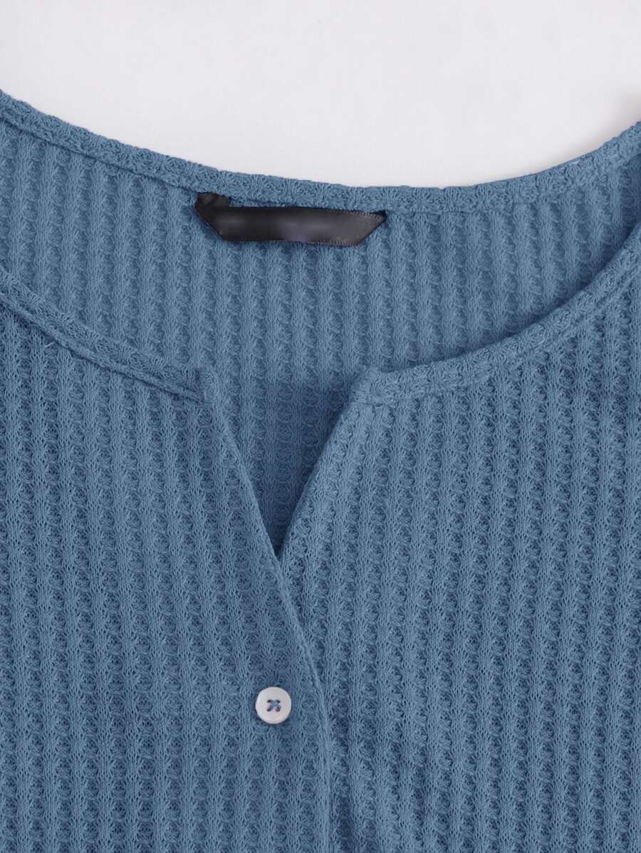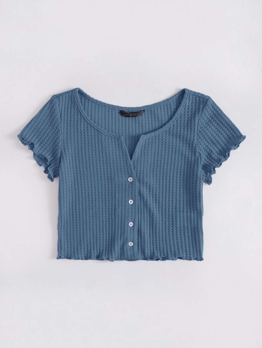 Maglietta in taglie forti a costine con bottone e bordo a lattuga