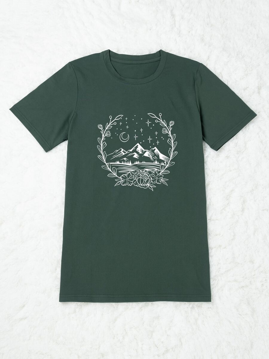 Maglietta da donna con stampa di montagne e fiori, top a grafica