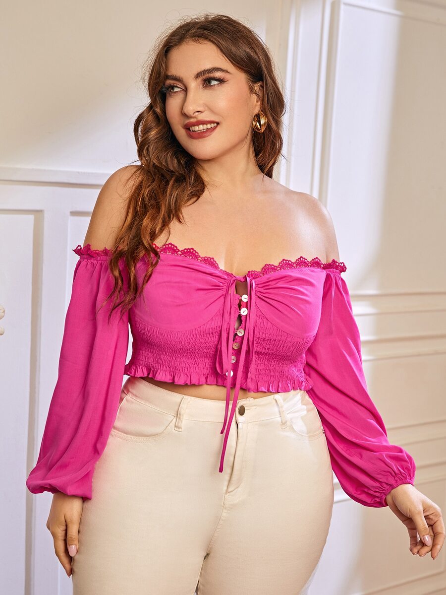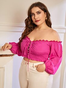 Camicetta con spalle scoperte manica a sbuffo nodo frontale