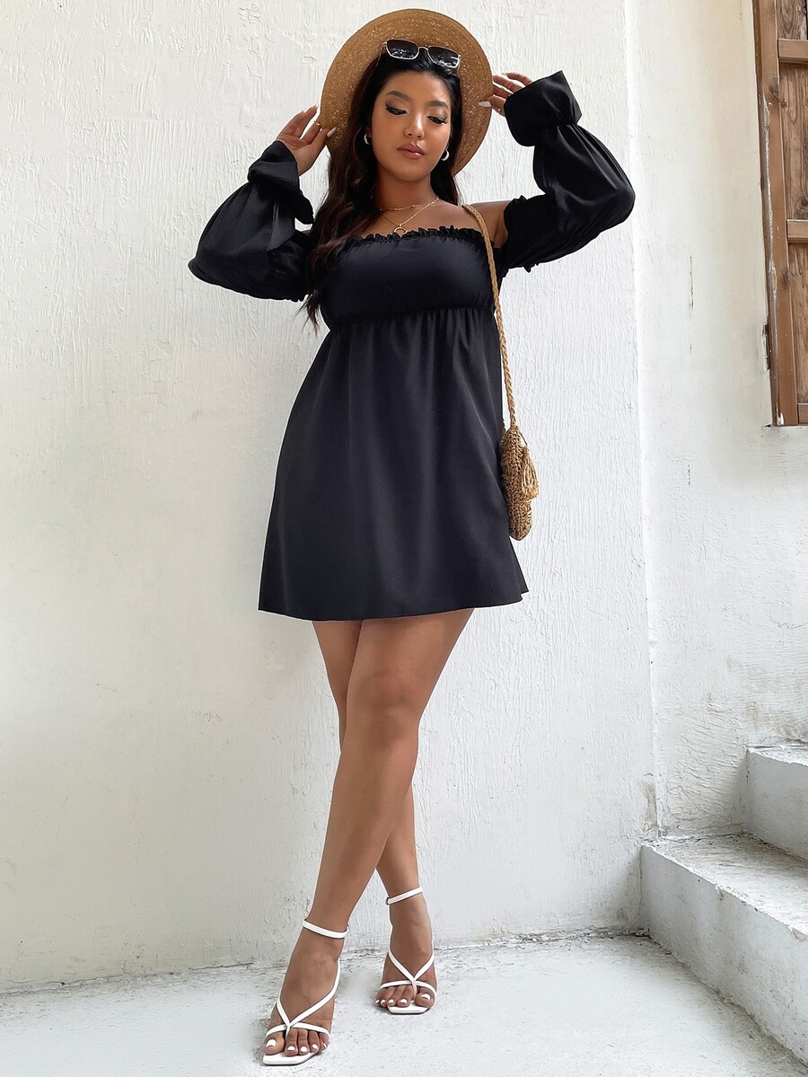 taglie forti Abiti con spalle scoperte con volant manica svasata