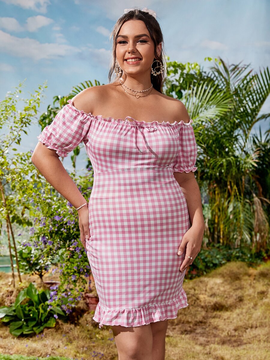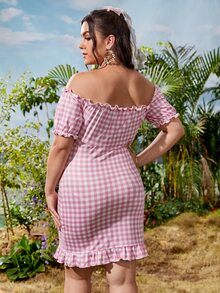 Abito di percalle con orlo arricciato e volant fuori dalla spalla