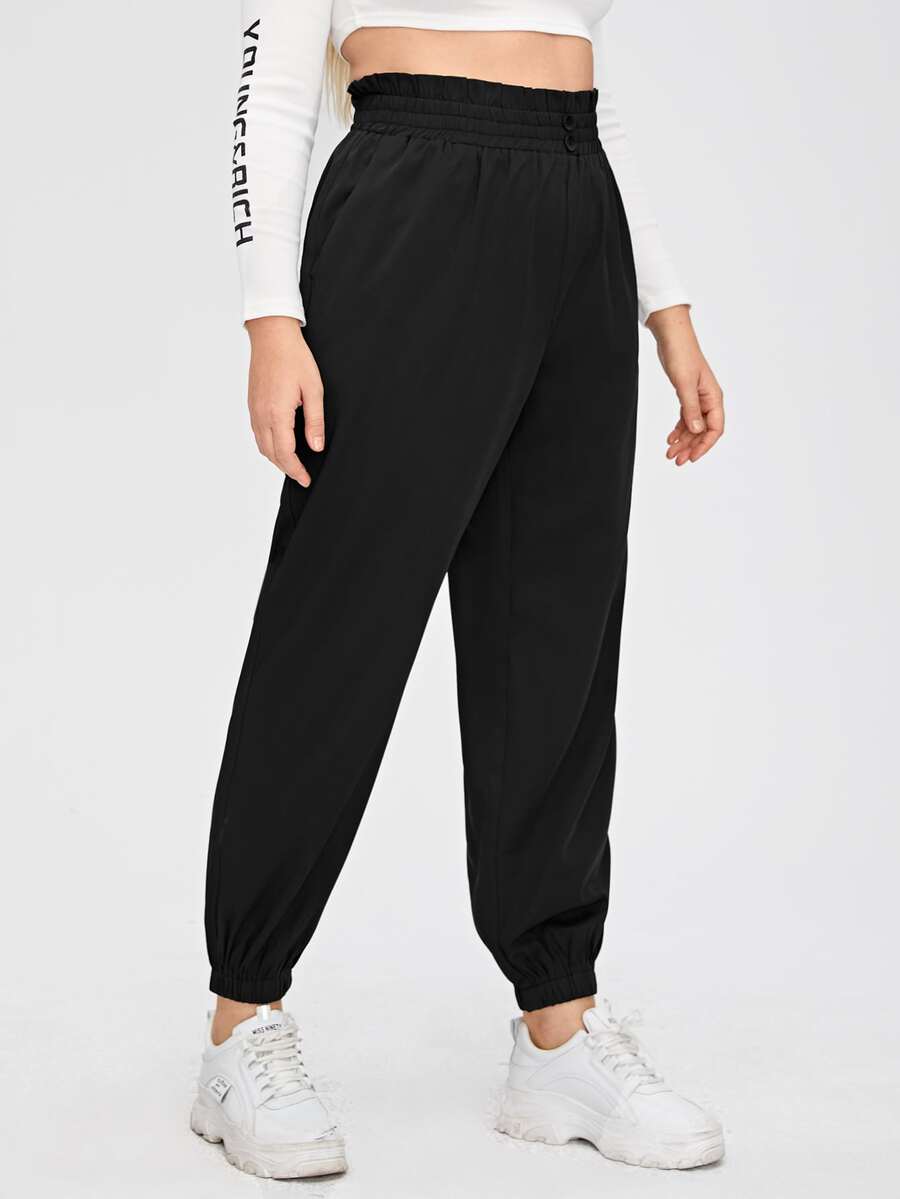 Pantaloni sportivi con vita a volant sovrapposti