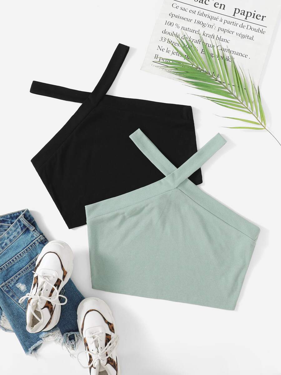 2 Pezzi Di Canotte Estive Incrociatecon Scollo Aperto per Taglie Forti