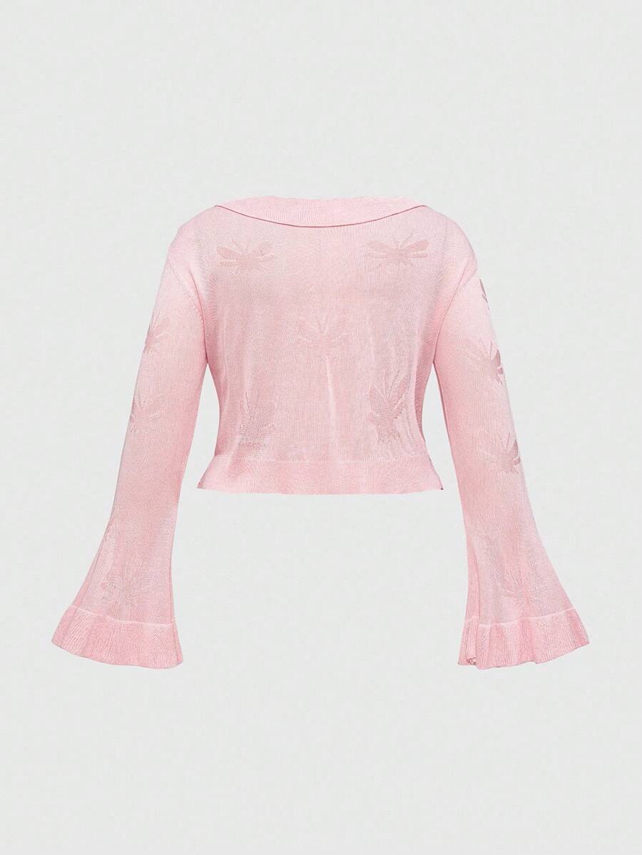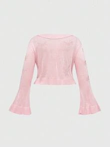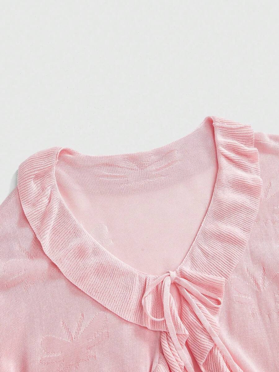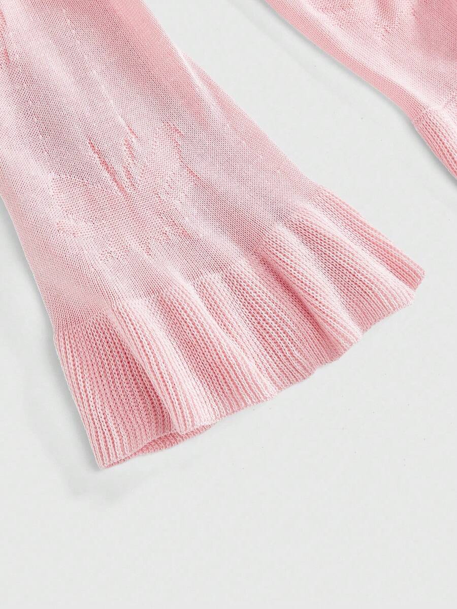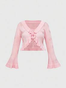 Kawaii Cardigan corto in maglia con maniche a sbuffo, orlo arricciato e motivo a farfalla, taglie comode