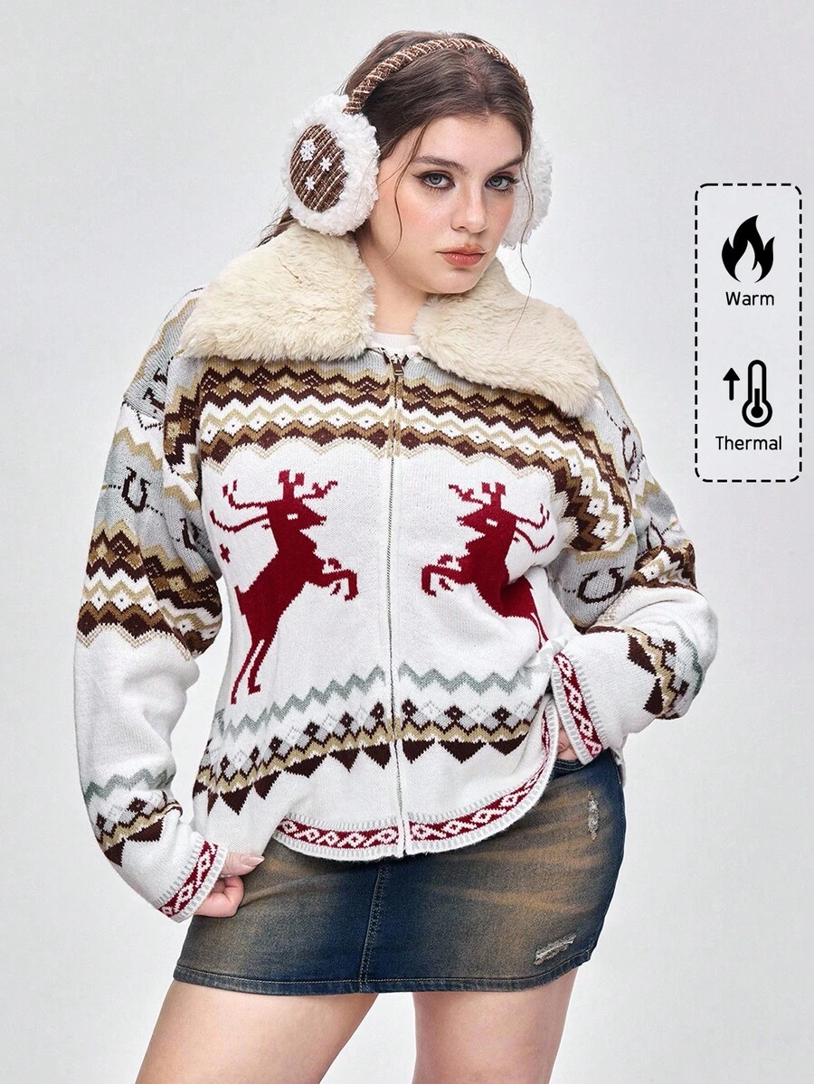 Kawaii Cardigan in maglia con motivo Fair Isle, Argyle, renne e fiocchi di neve, taglie comode, per donna, adatto per l'autunno/inverno, vacanze e tempo libero