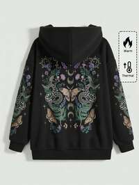 Fairycore Felpa casual con cappuccio con stampa a farfalla, taglie comode