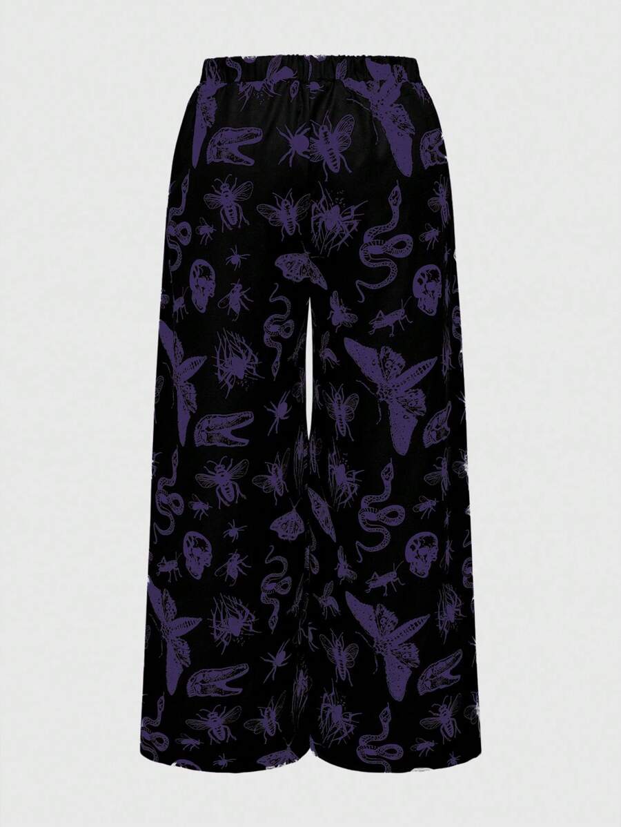 Goth Pantaloni a gamba larga con stampa di teschio di serpente di falena di taglia grande