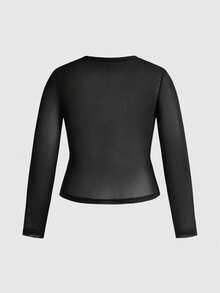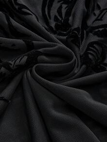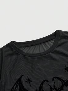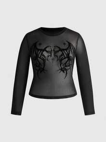 Goth Maglietta a maniche lunghe con taglio sexy e texture floccata a forma di ali di pipistrello, per donne taglia curvy, stile gotico