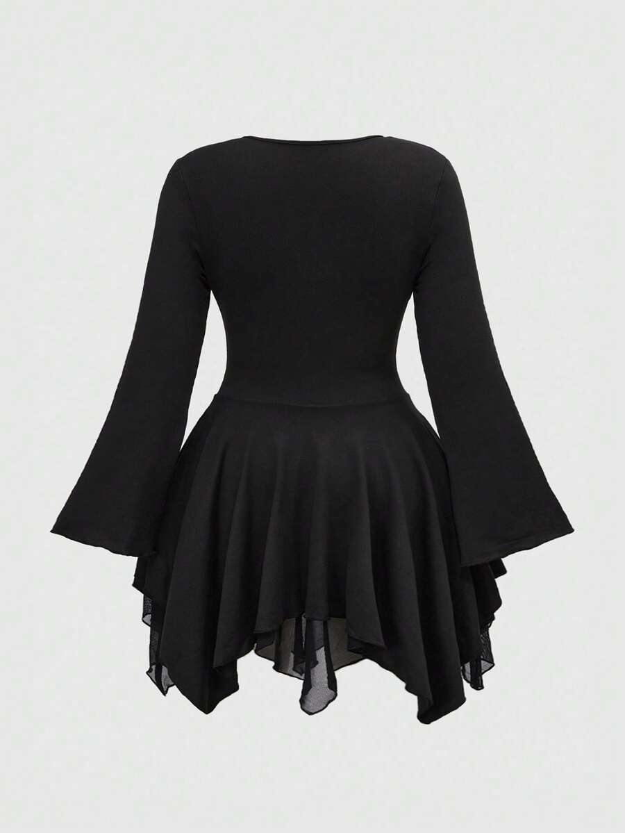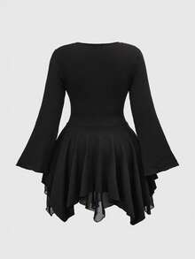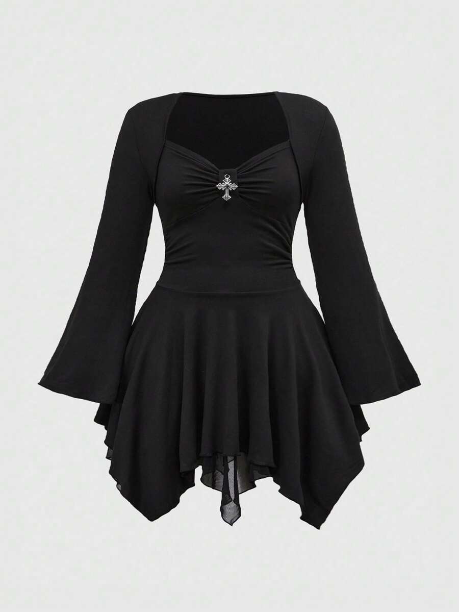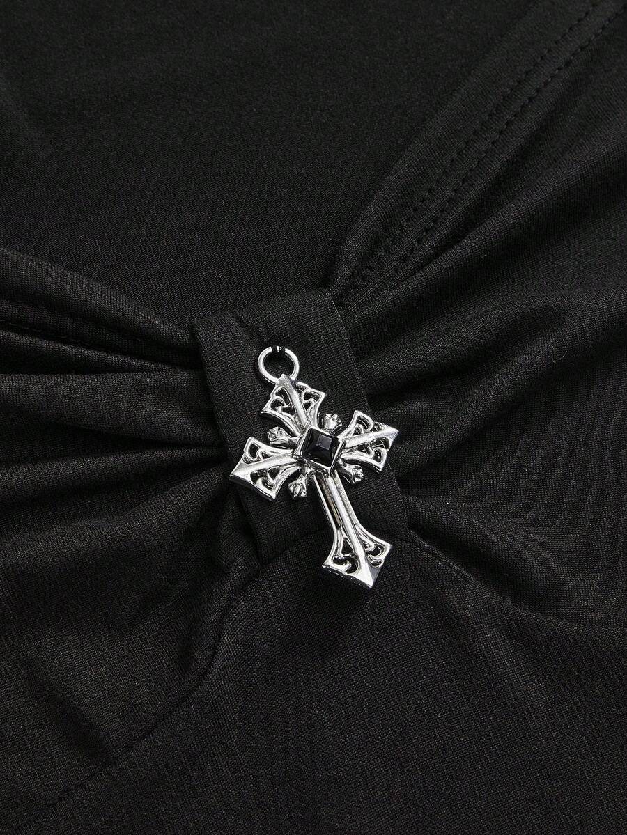 Goth Abito nero asimmetrico con croce, stile gotico casual minimalista ed elegante per taglie forti, abito nero semplice per autunno/inverno
