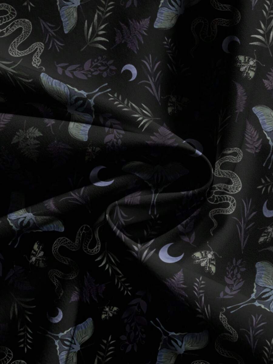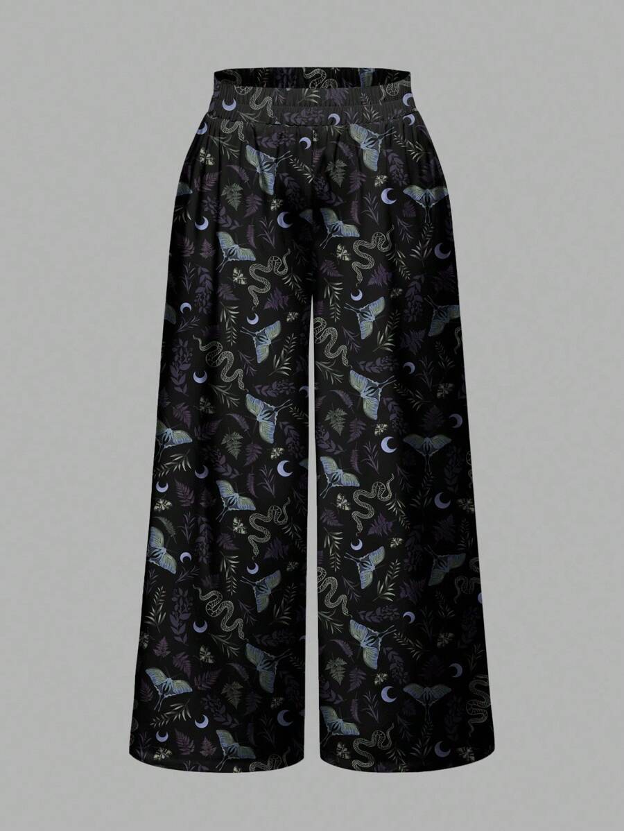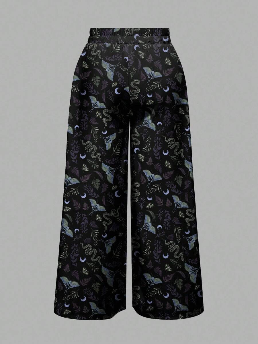 Goth Pantaloni larghi neri con stampe gotiche di falene, piante, serpenti e lune, taglia comoda, adatti per Ognissanti