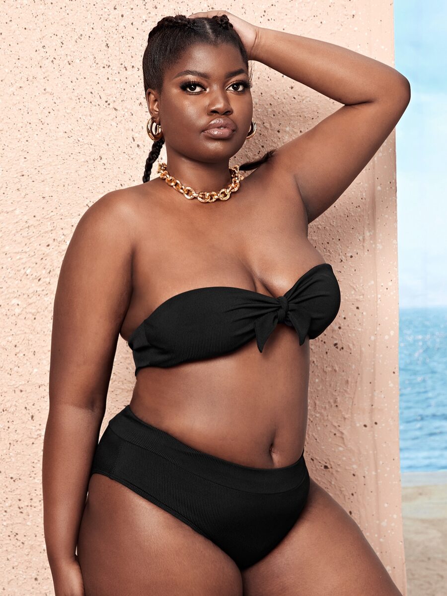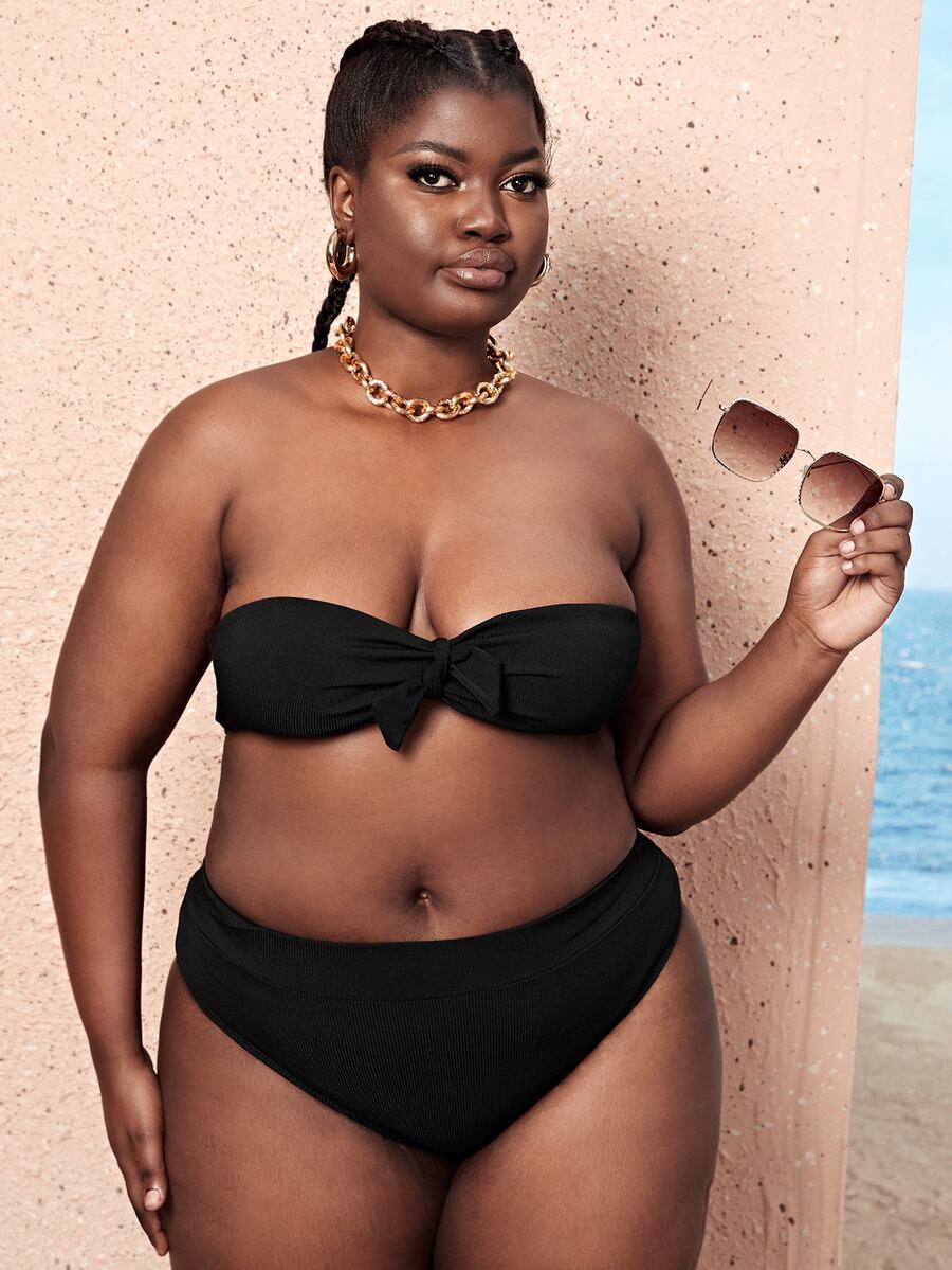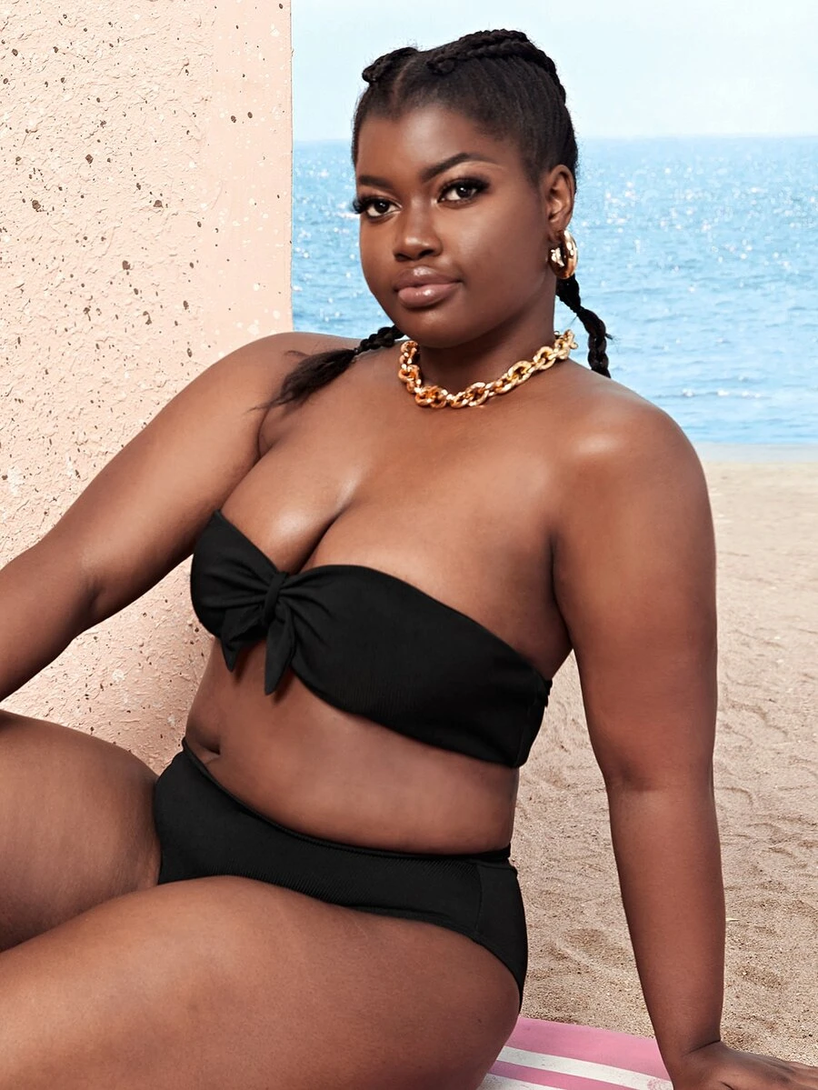 Costume da bagno con fascia annodata e vita alta, estivo per la spiaggia, taglie comode