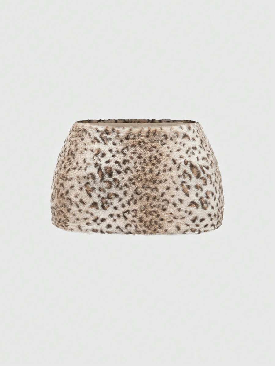 Grunge Punk Minigonna morbida e fluffy con stampa leopardata, adatta per festival musicali Y2K, taglie comode