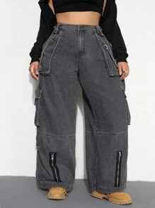 Grunge Punk Jeans in denim oversize con design a croce, cinturini con borchie e stile punk dark heavy metal
