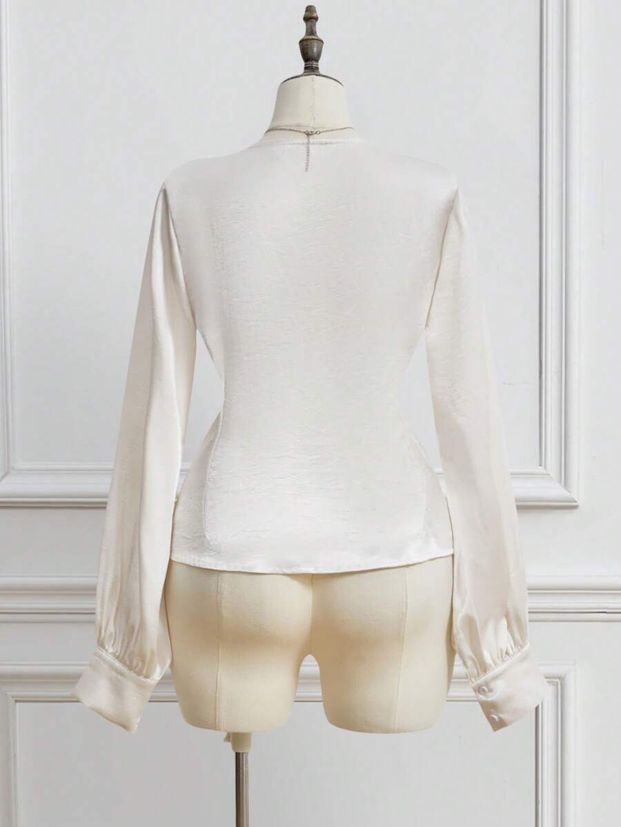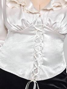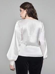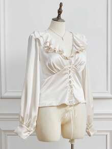 EDITION Camicetta con scollo a V, volant e maniche a sbuffo, stile vintage, per donne taglia curvy