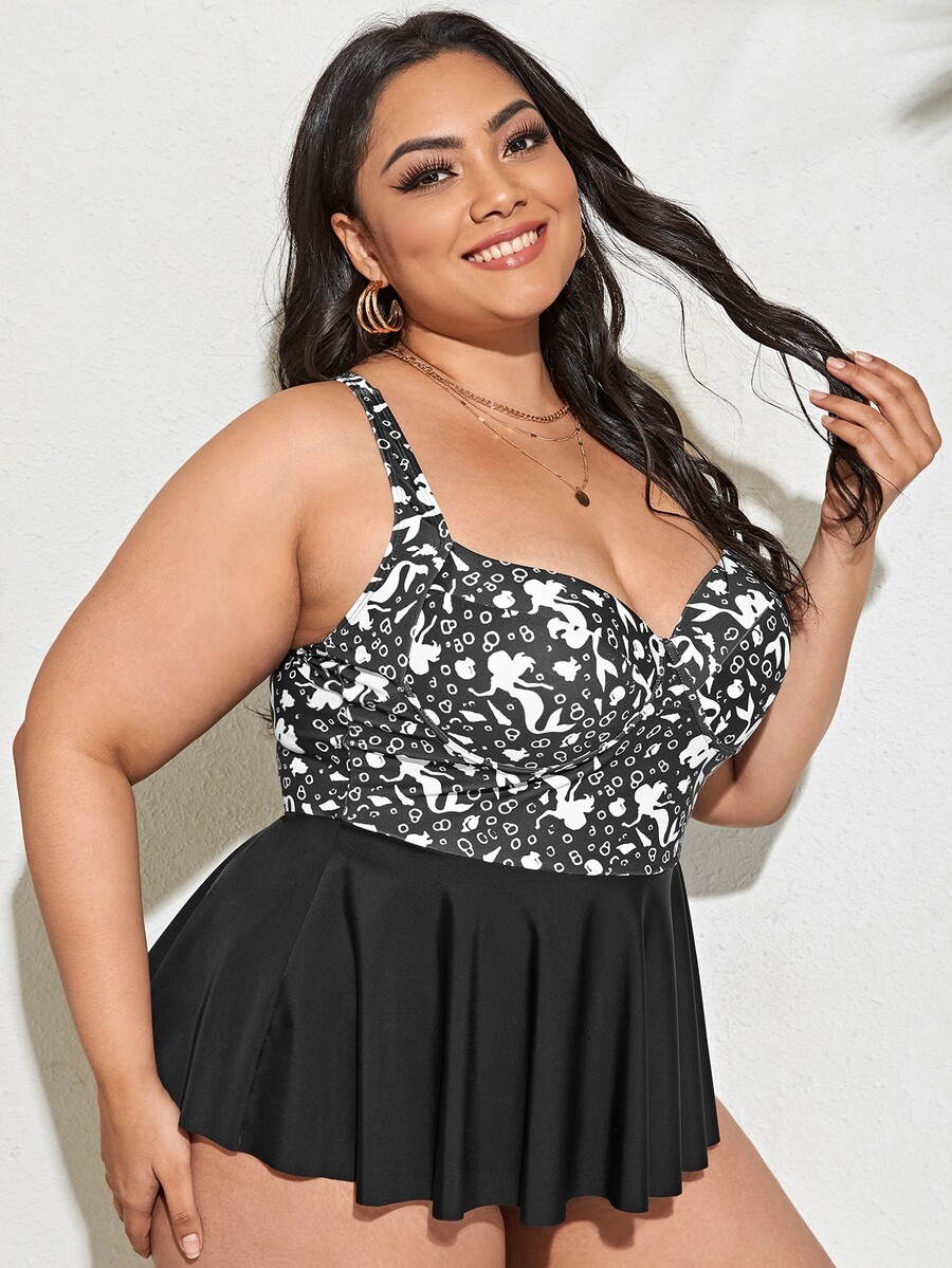 Tankini con ferretto e stampa a tema sirena, taglie grandi, per spiaggia estiva