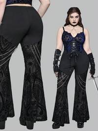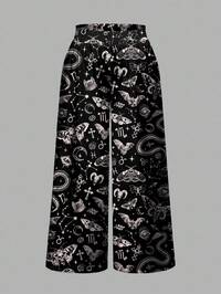 Goth Pantaloni larghi e morbidi con stampa di pipistrelli, teschi, funghi, sole, luna, stelle, libellule, gemme, piante e serpenti, in stile gotico scuro, adatti per Ognissanti, in taglie comode Goth Pantaloni a zampa larga da donna taglie forti, stile gotico, misteriosi, con cuori, pipistrelli, soli, lune, stelle, gemme, scorpioni, cuori, falene, ragnatele, per Ognissanti